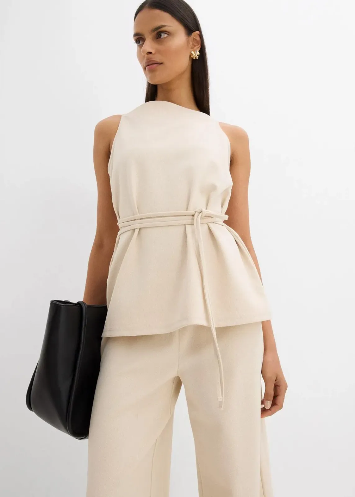 Ärmelloses Top mit schmalem Taillengürtel aus Piqué