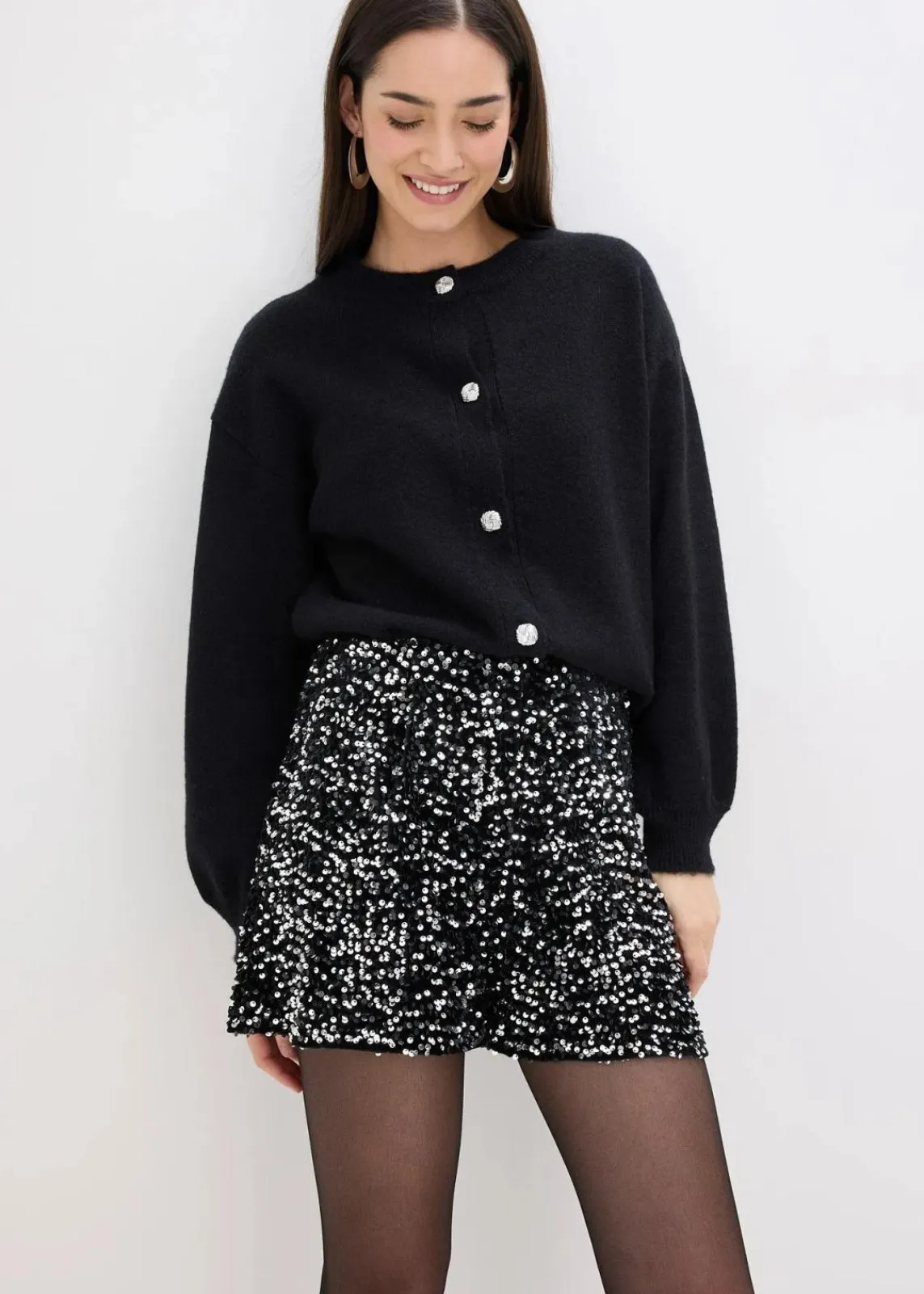 modische Pailletten-Shorts mit Haken- und Ösen-Verschluss vorne