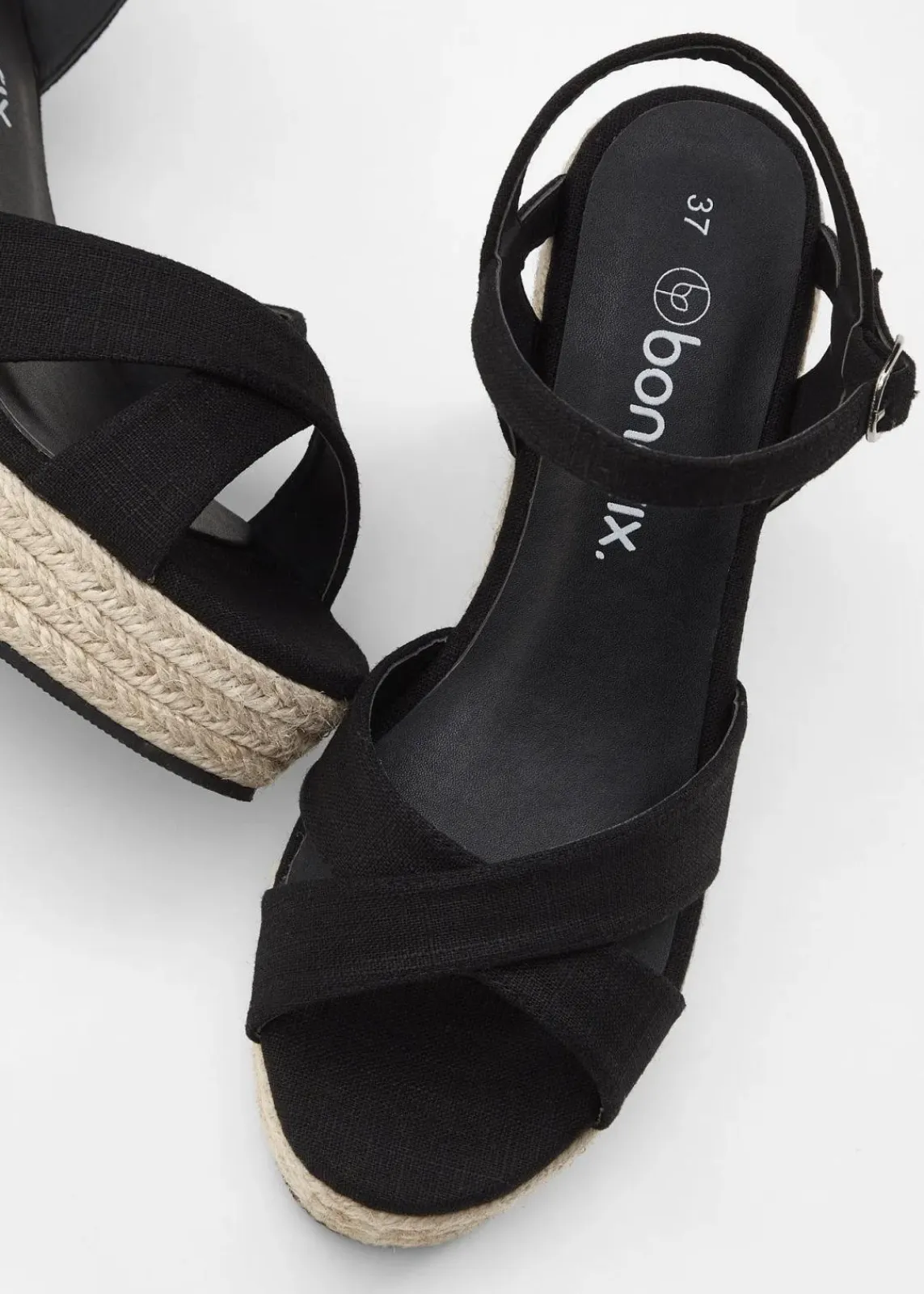 Süße Keilsandalette mit Bastabsatz und gekreuzten Riemen vorne