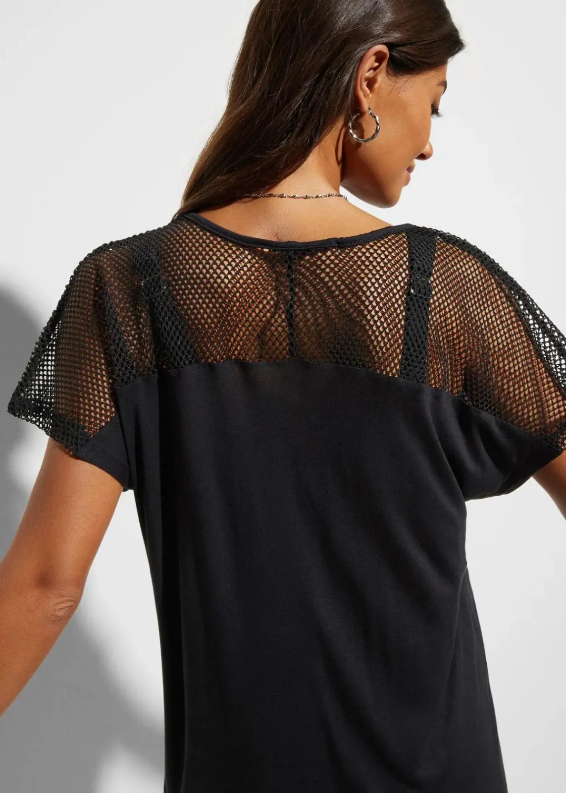 Strandshirt mit Rundhalsausschnitt und mit Einsätzen aus Netzware.