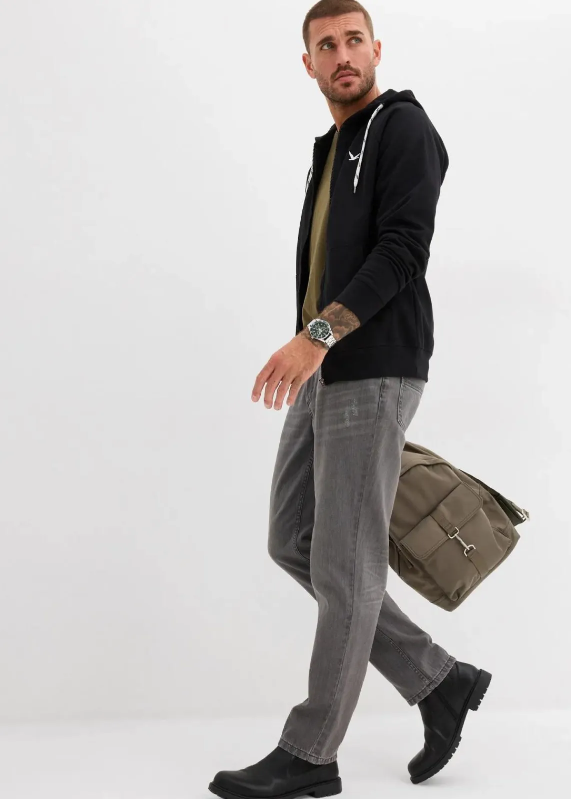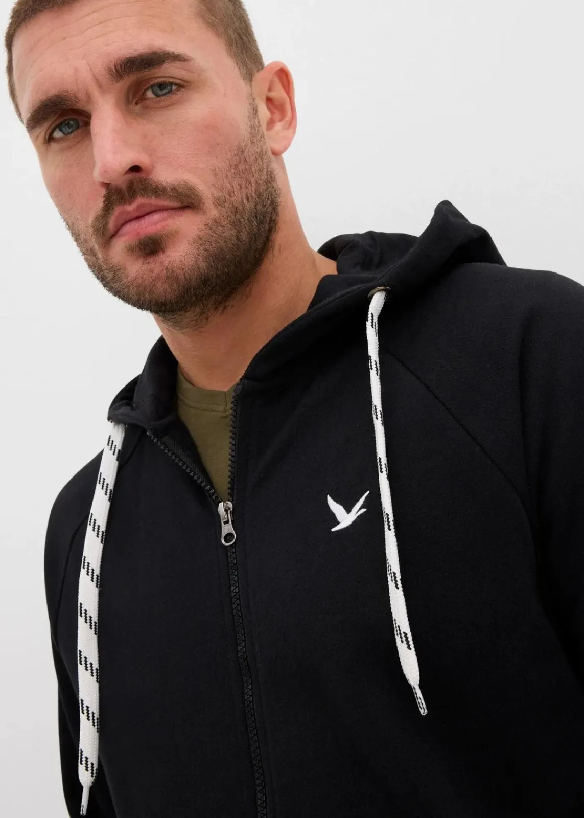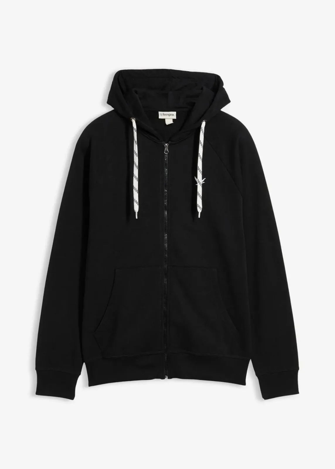 moderne Kapuzensweatjacke mit Kontrastkordeln und kleiner Stickerei
