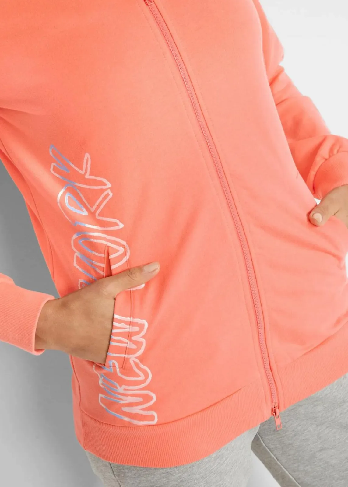 Kapuzen-Sweatjacke, mit passender Jogginghose auch als Jogginganzug tragbar, Eingriffstaschen, 2-Wege-Reißverschluss, in Gr. 40/42 ca. 70cm lang, maschinenwaschbar.