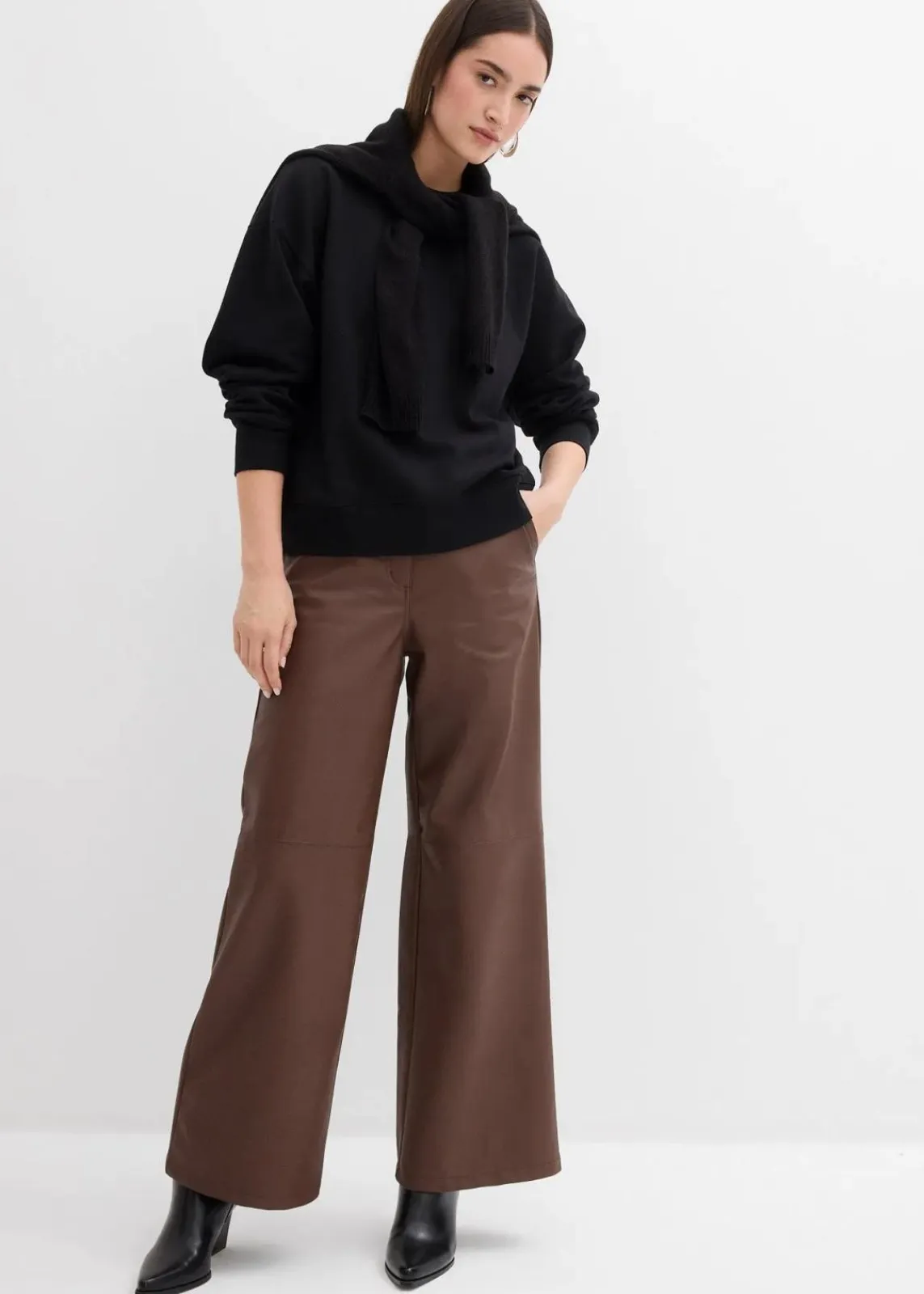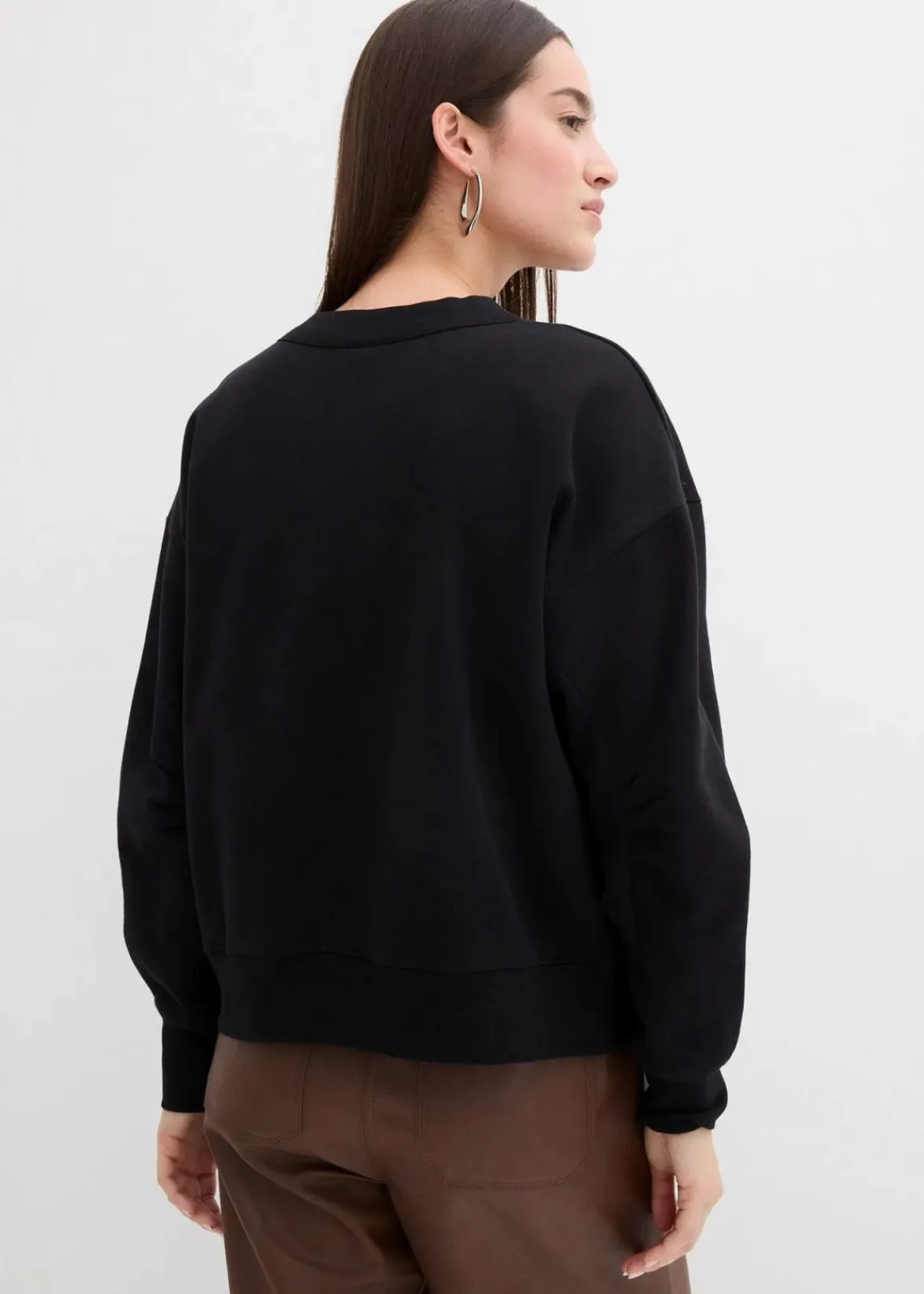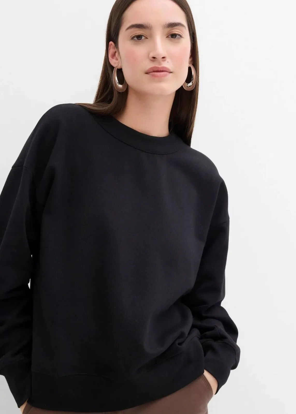 Langarm-Sweatshirt mit Rundhalsausschnitt weitem Ripp-Kragen sowie Abnähern am Ärmel aus Bio-Baumwolle