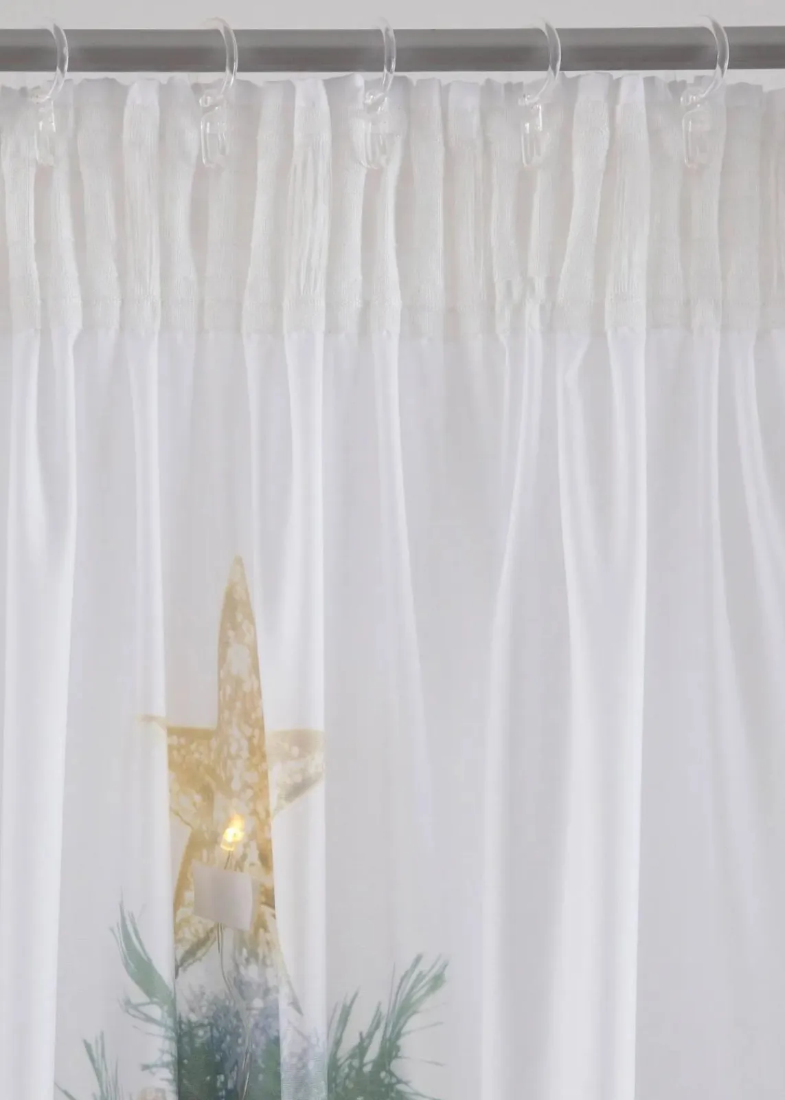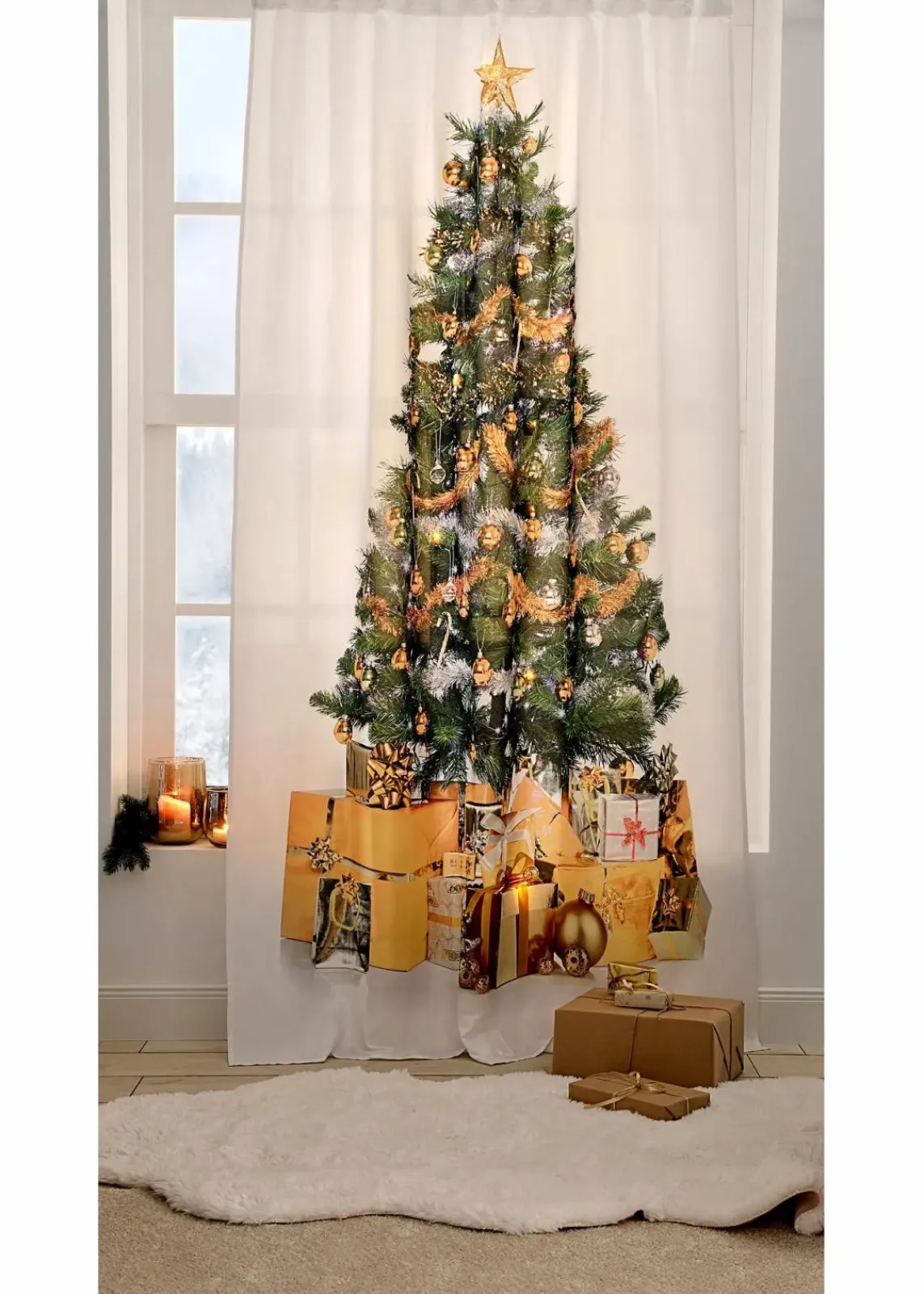 Der perfekte Weihnachtsbaum für Dein Zuhause. Unser Vorhang „LED Weihnachtsbaum“ überzeugt mit seinem fotorealistisch gedruckten Design. Mit 14 LED-Leuchten zum absoluten Highlight in Deinem Wohnzimmer. Die Rückseite ist hell ohne Druck, mit den LED-Lichtern, dem notwendigem Kabel und der Batteriebox verarbeitet. Die Beleuchtung lässt sich leicht vom Vorhang trennen und macht ihn dadurch leicht waschbar. Für die Beleuchtung benötigst Du zwei AAA-Batterien. Die Maße dieses Vorhangs betragen ca.230×140 cm. Die Aufhängung erfolgt mittels Multifunktionsband.