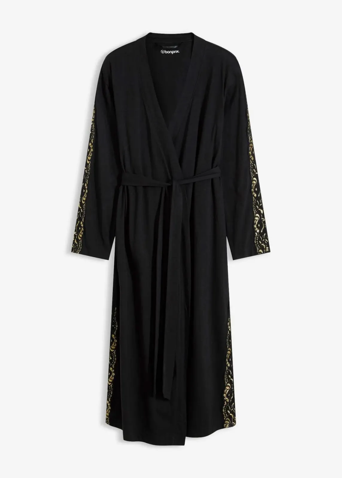 Femininer langer Kimono Morgenmantel mit besonderer Glitzerspitze sowie weiten Ärmeln