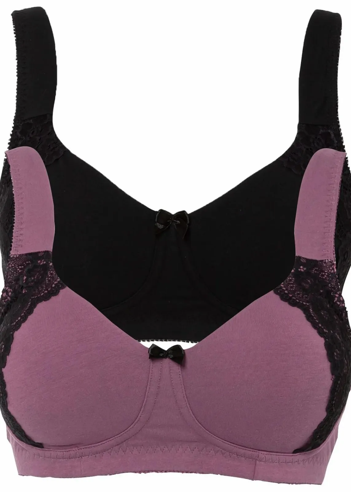 Dieser Minimizer-BH verkleinert optisch die Brust und hat breite, gepolsterte Träger. Spitze und Schleife sind farblich abgesetzt.