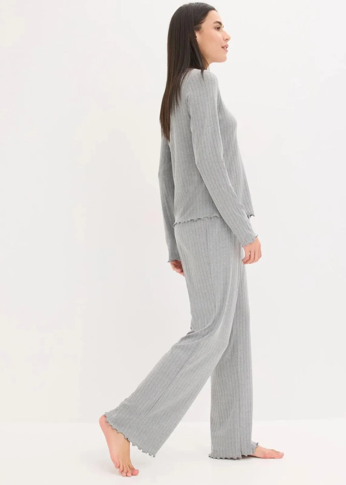 Gemütlicher Loungewear Hausanzug mit Wellenkante an den Säumen