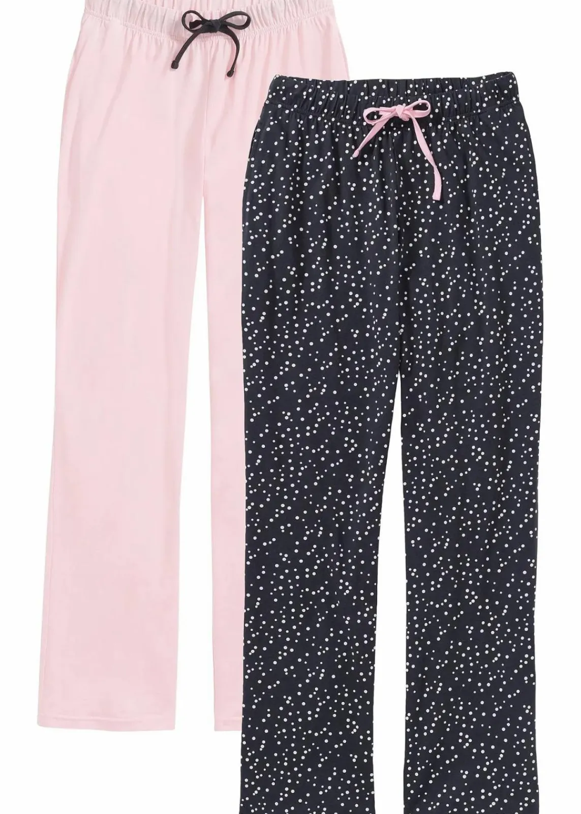 Dieses praktische Doppelpack Schlafanzugshosen verfügt über einen hohen Baumwollanteil. Das Bindeband lässt sich regulieren.