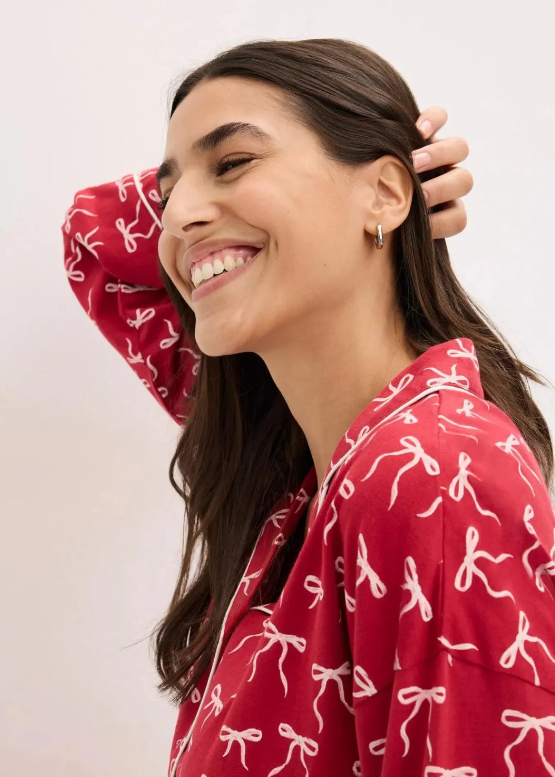 Weicher bedruckter Pyjama mit Reverskragen und Knopfleiste sowie einer Hose mit Eingriffstaschen