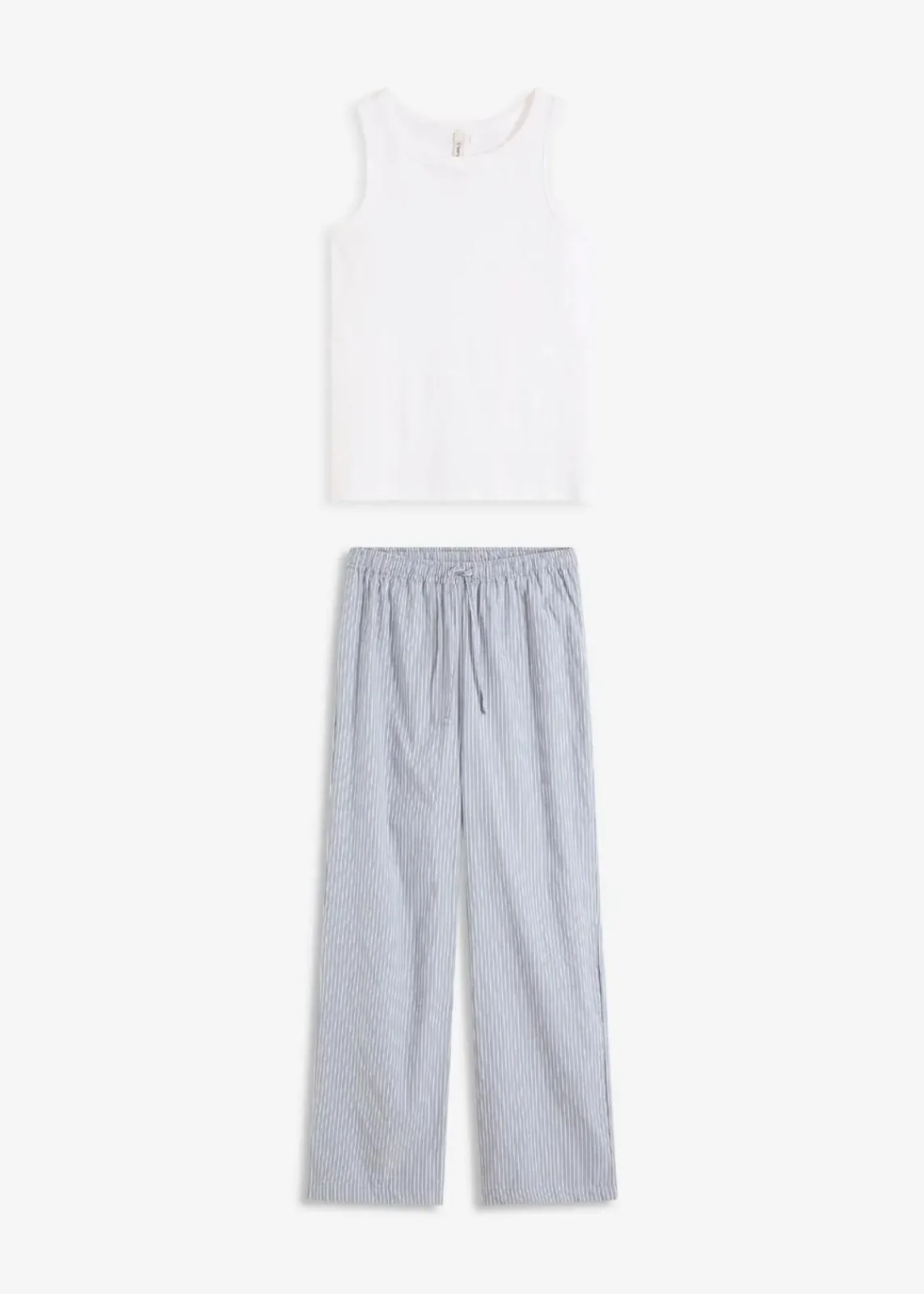 Modischer Pyjama mit gerippten Tanktop und gewebter Hose mit Streifen und Bindeband