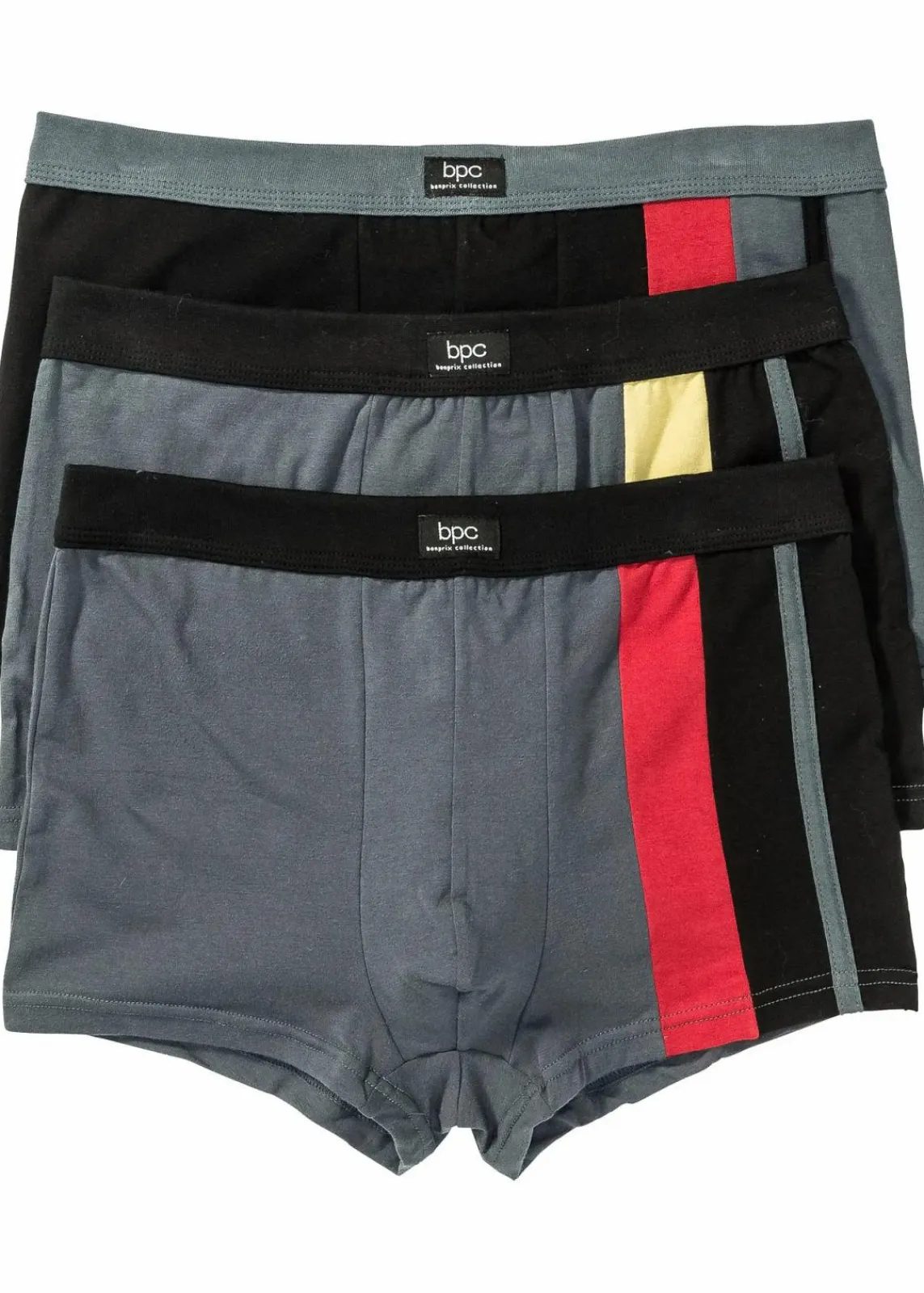 Im sportlichen Retro-Look mit markantem Streifendesign auf der linken Seite zeigen sich diese Boxer für Herren.