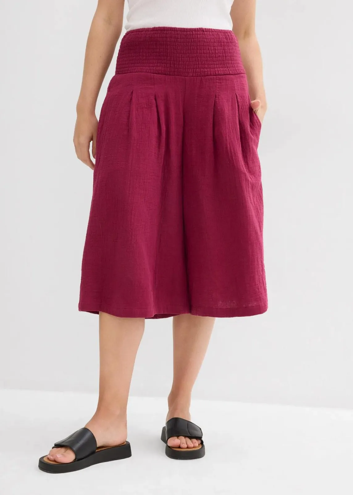 Capri-Hose mit breitem Gummibund und seitlichen Eingriffstaschen aus reiner Baumwolle
