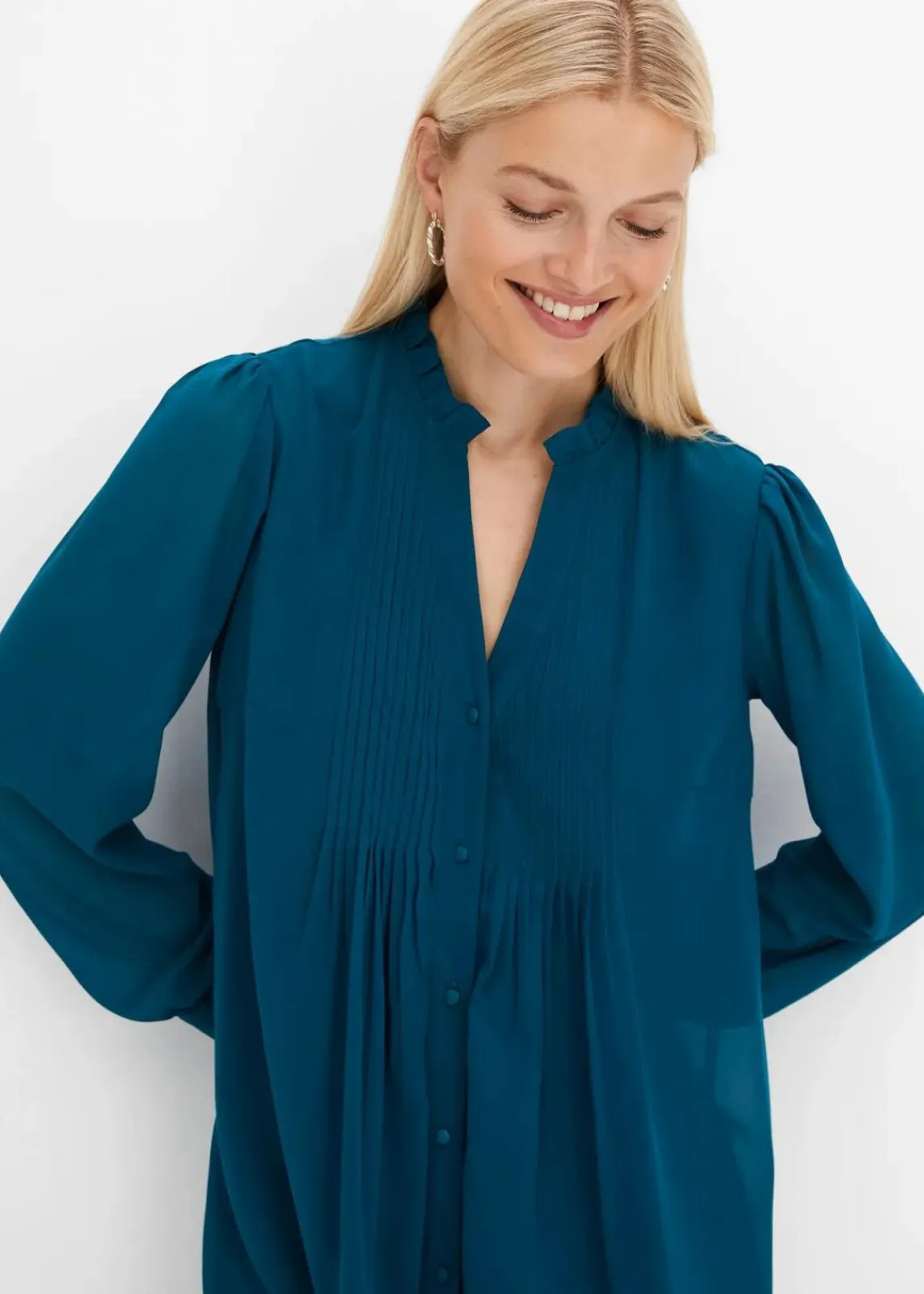 feminines Kleid mit Biesen vorne am Ausschnitt