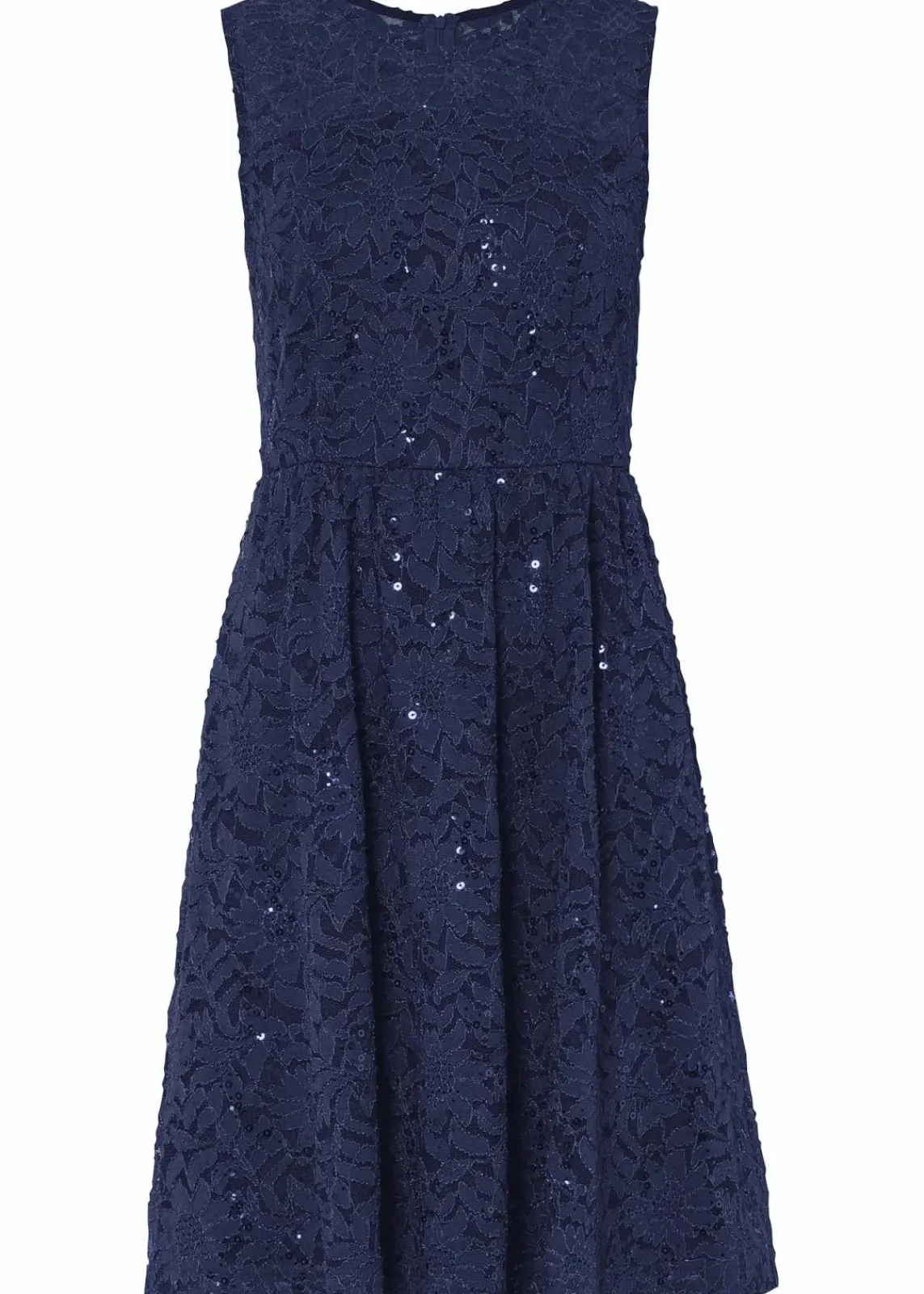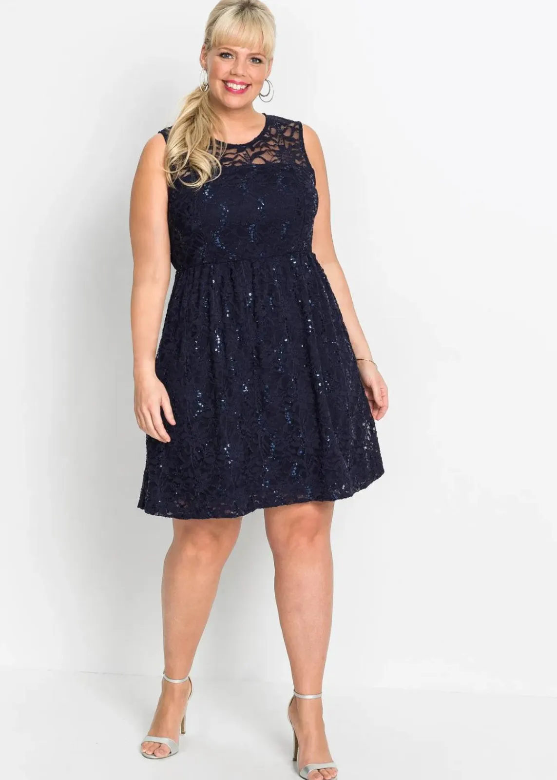 Elegantes Spitzenkleid mit bestickten Pailletten und ausgestelltem Rock