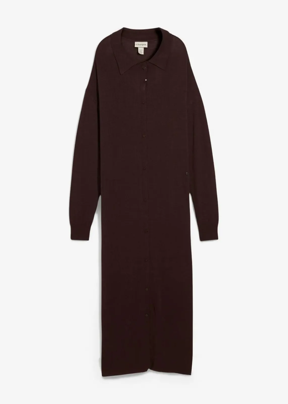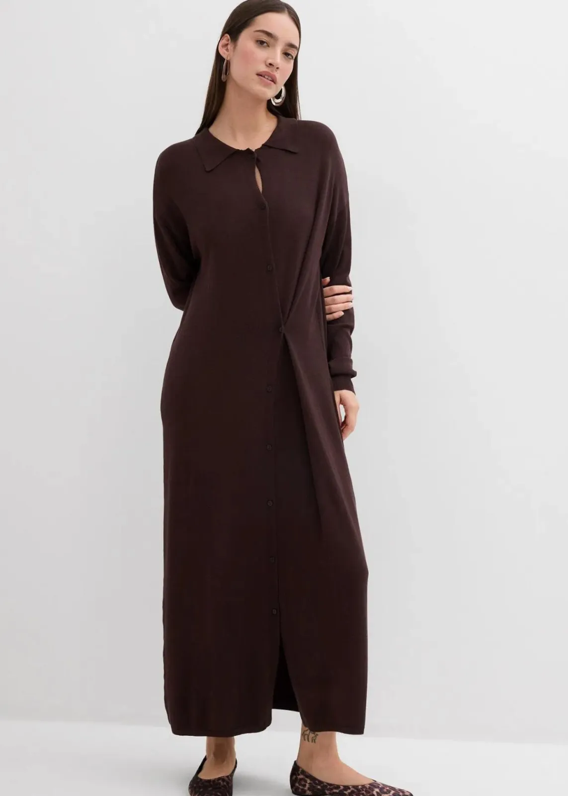 Feinstrickkleid mit einem offenen Kragen, langen Ärmeln und einer Knopfleiste vorne
