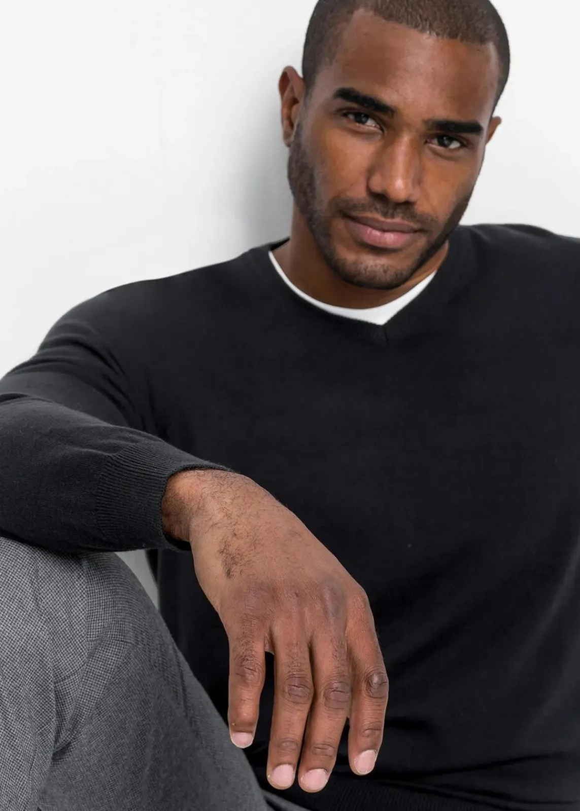 Klassischer Herren Feinstrick-Pullover mit V-Ausschnitt in weicher Baumwollmix-Qualität mit gerippten Abschlüssen.