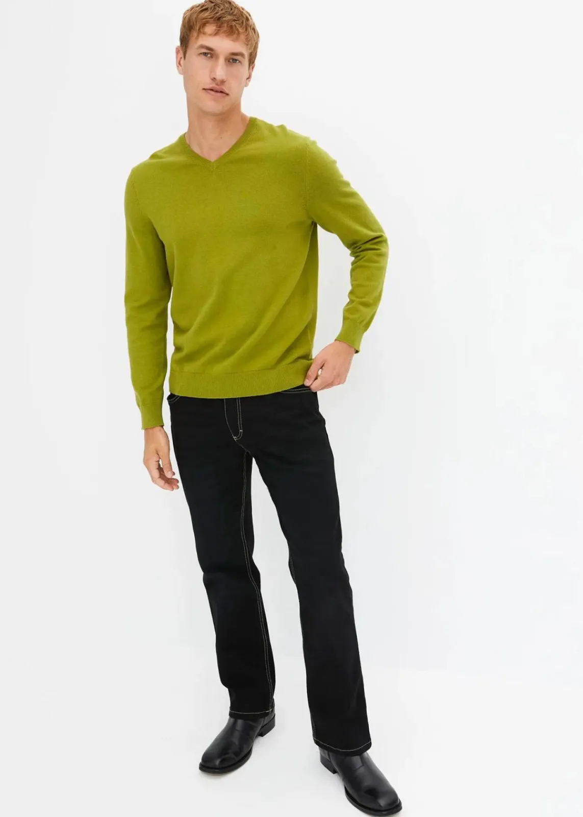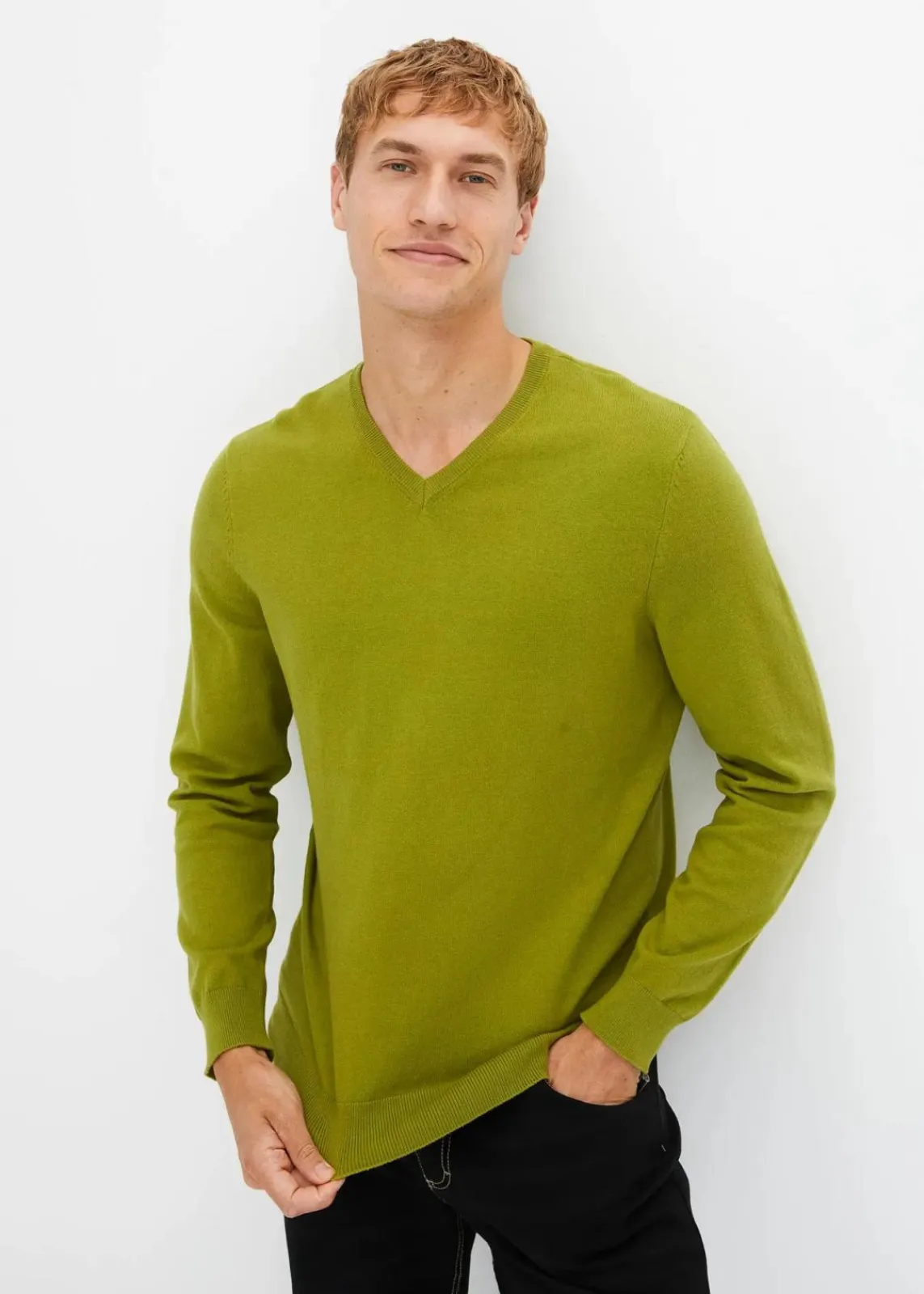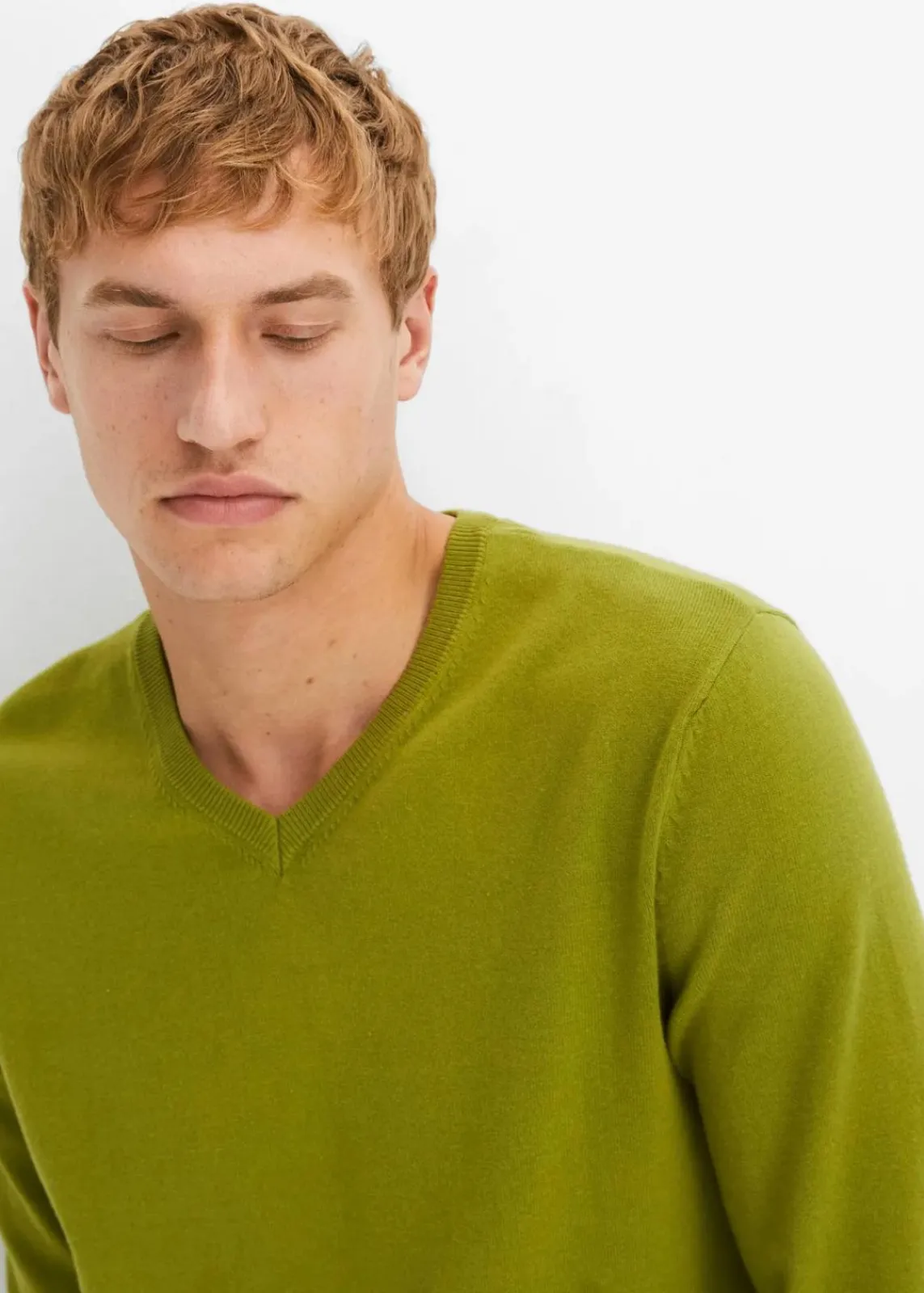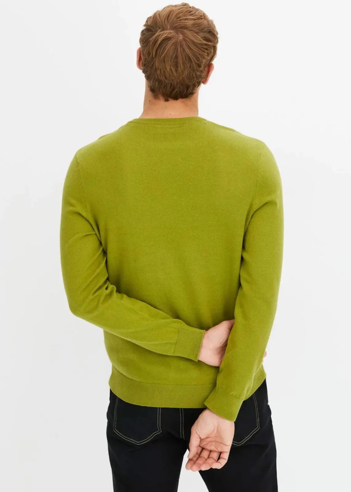 Klassischer Herren Feinstrick-Pullover mit V-Ausschnitt in weicher Baumwollmix-Qualität mit gerippten Abschlüssen.