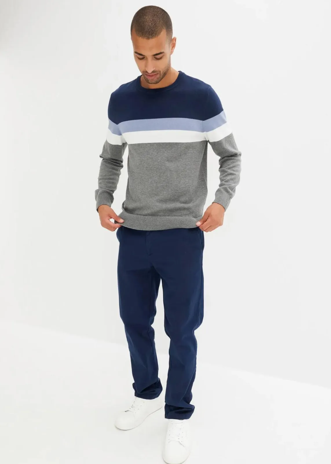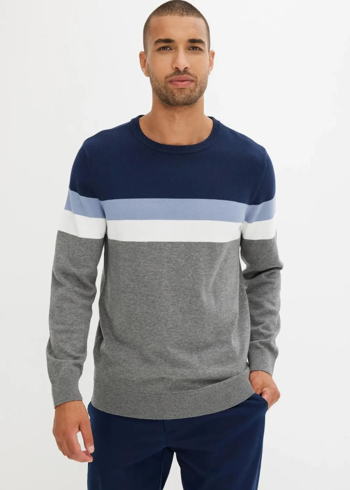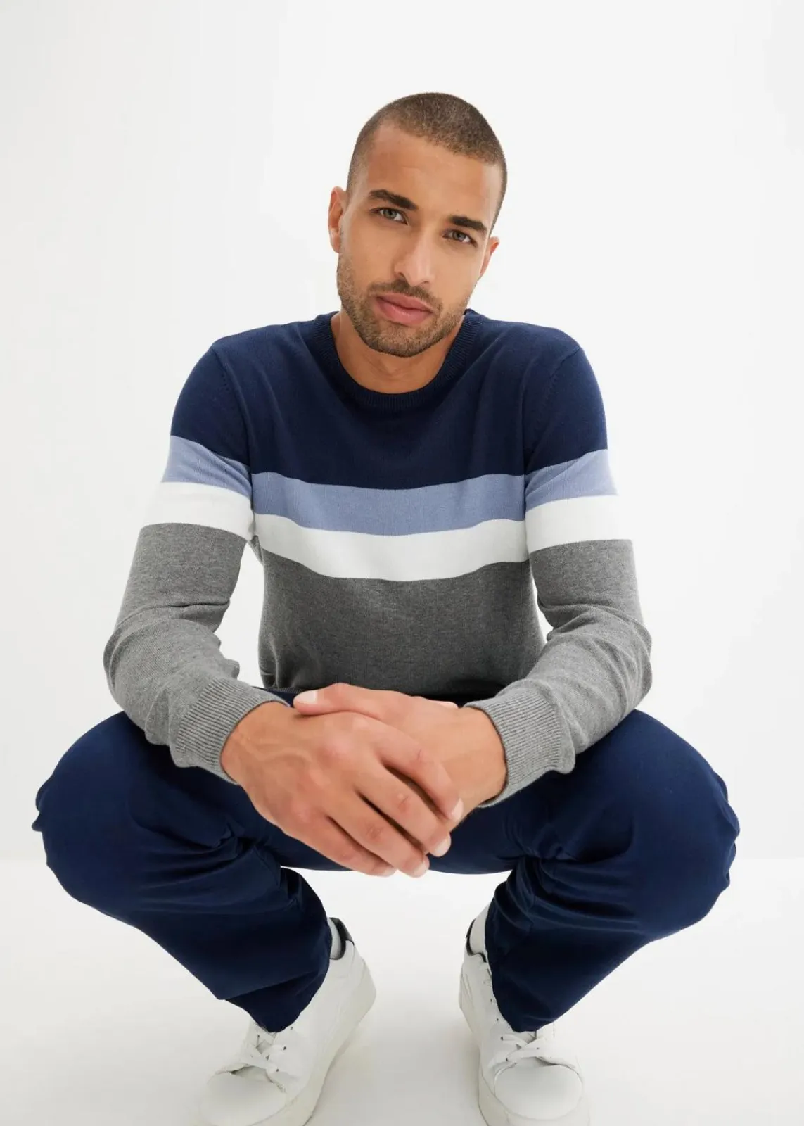 Pullover mit Rundhalsausschnitt und Streifen, mit Komfortschnitt