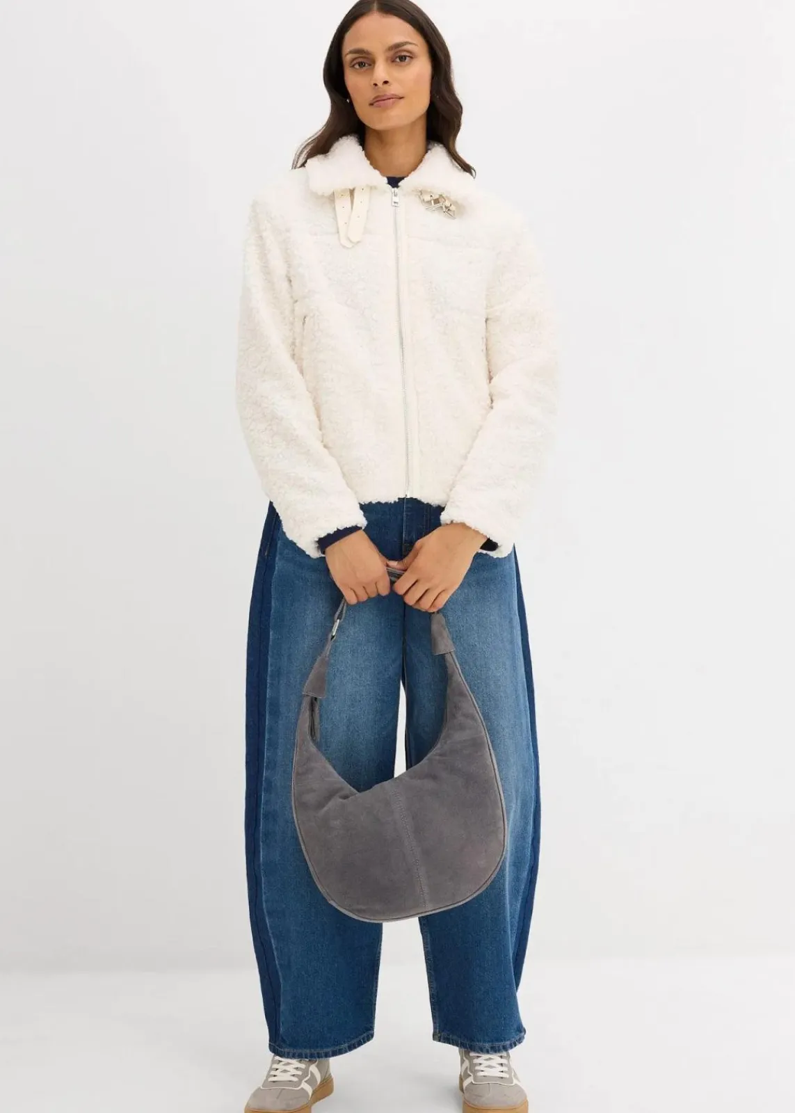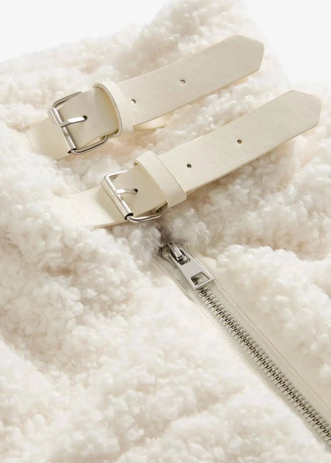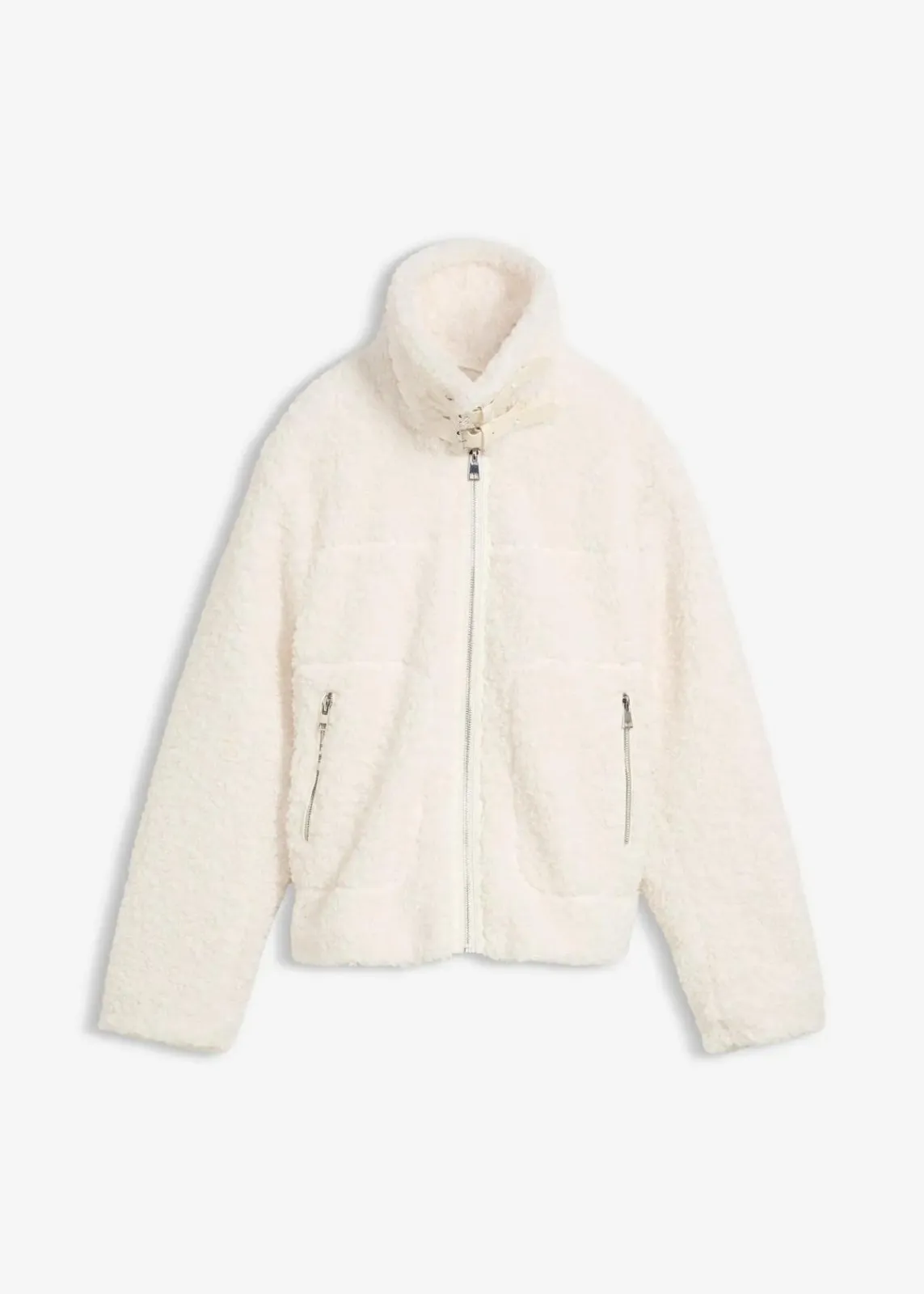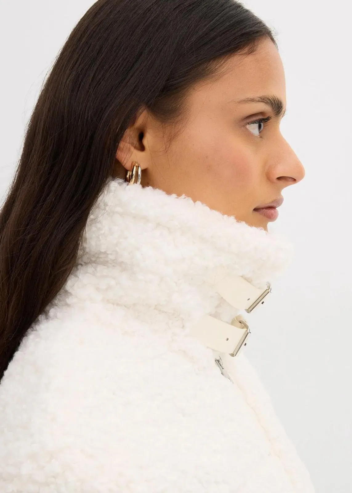 Modische Fellimitat-Jacke aus Teddyfleece und seitlichen Taschen