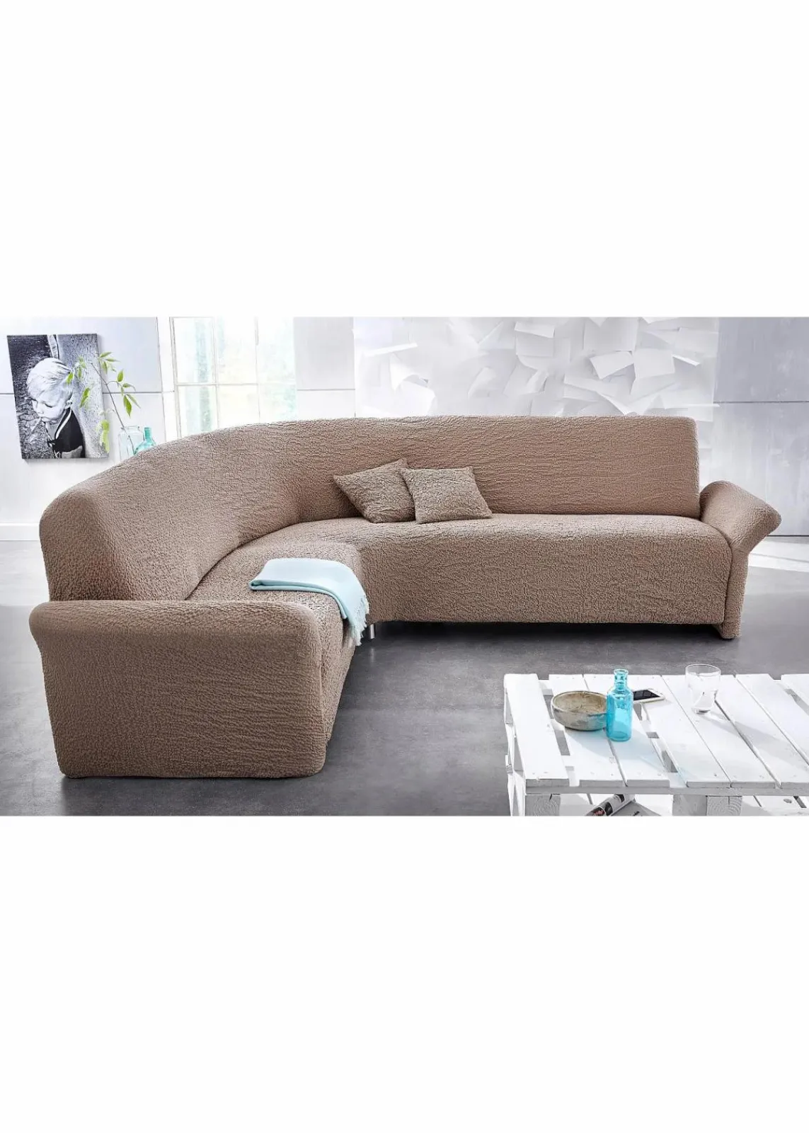 Husse im schicken Crincle-Effekt aus weichem Material. Der Überzug ist elastisch und lässt sich je nach gewählter Größe eng an die Sessel- oder Sofaform anpassen, um diese vor Gebrauchsspuren zu schützen. Erhältlich in verschiedenen Farben. Höhe für Gr.1-7 ca. 70-100cm, Gr.8 sind die passenden Kissenhüllen im 2er-Pack (40/40cm). Elastische Bänder helfen bei der Fixierung der Husse in Größe 5-7. Ottomane links bedeutet die Ottomane befindet sich links, wenn man frontal vor dem Sofa steht.