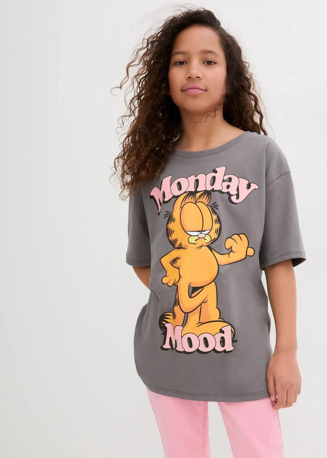 Lässiges Oversize-T-Shirt mit Garfield-Print: Rundhalsausschnitt, kurze Ärmel, bequemer Schnitt – ein Must-have für alle Fans!