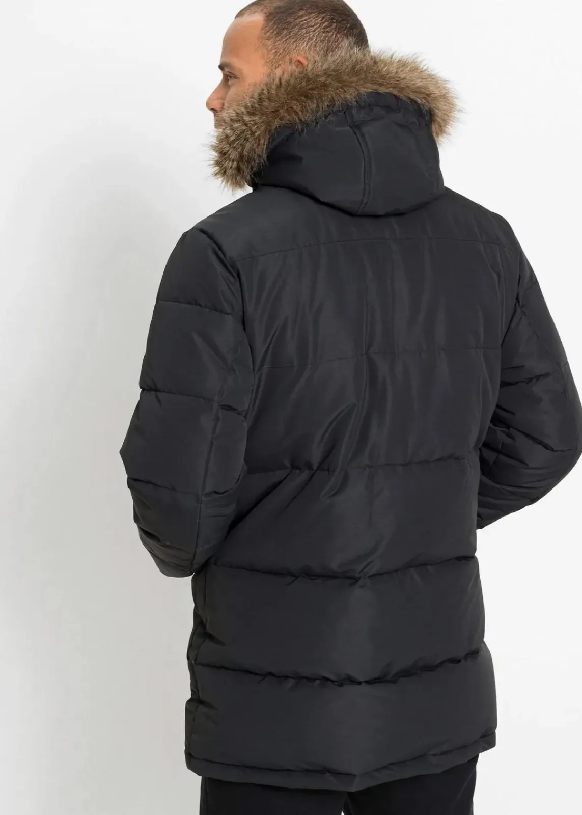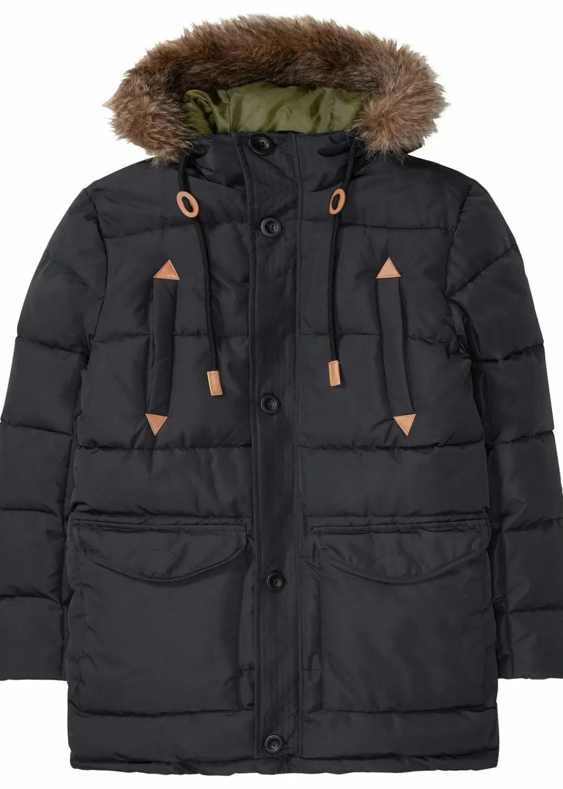 Dieser Herren Winterparka im Regular Fit ist das perfekte Outfit für die kalte Jahreszeit. Die lange Jacke punktet mit einer Kapuze, die am Rand mit weichem Fellimitat abgesetzt ist. Zwei aufgesetzte große Taschen, zwei Eingrifftaschen und eine Innentasche bieten Platz für viele Utensilien.Der Winterparka Regular Fit wird mit einem verdeckten Reißverschluss geschlossen.