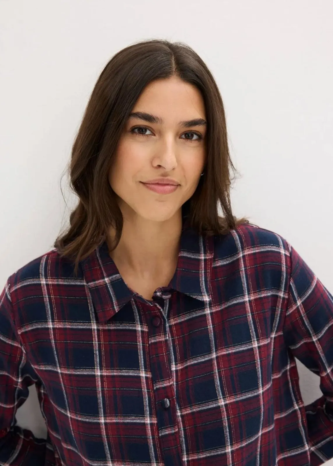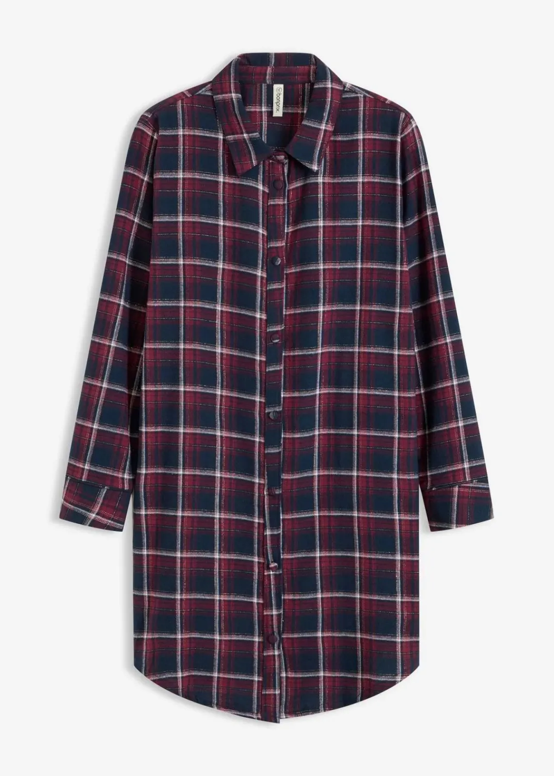 Gewebtes Flanell Nachthemd mit spitzen Blusenkragen und Knopfleiste wie Bündchen an den Ärmeln