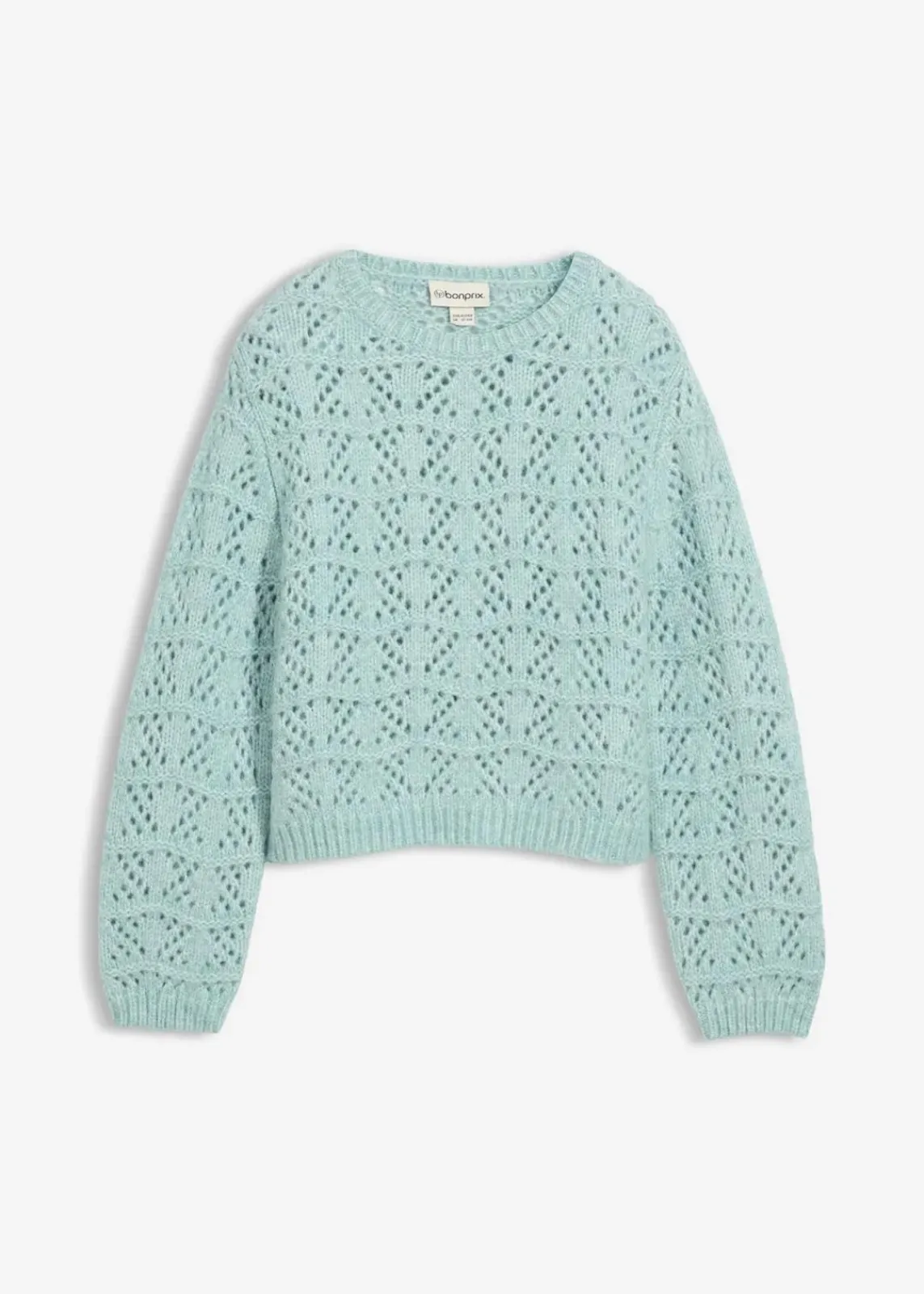 Luftiger Grobstrick-Pullover mit Lochstickerei für Mädchen