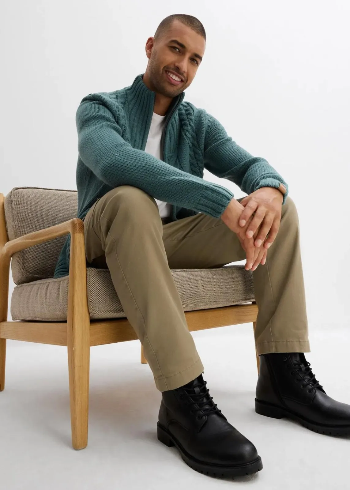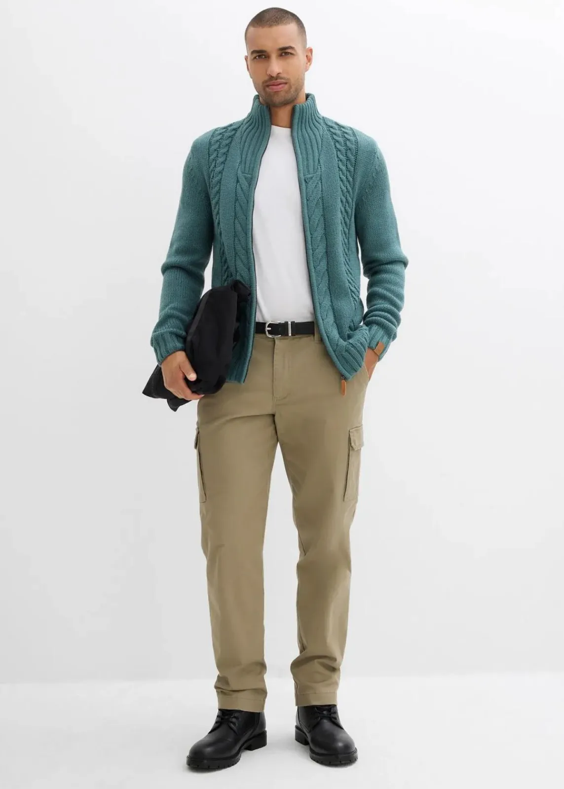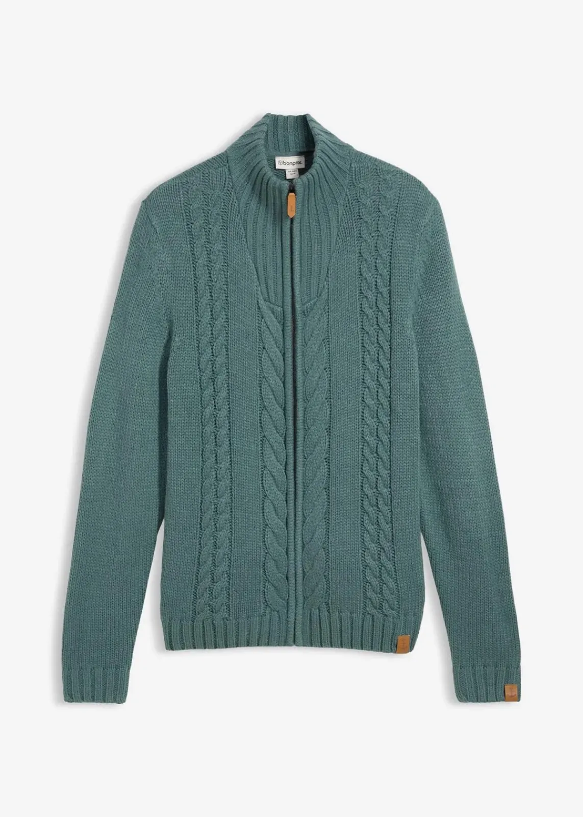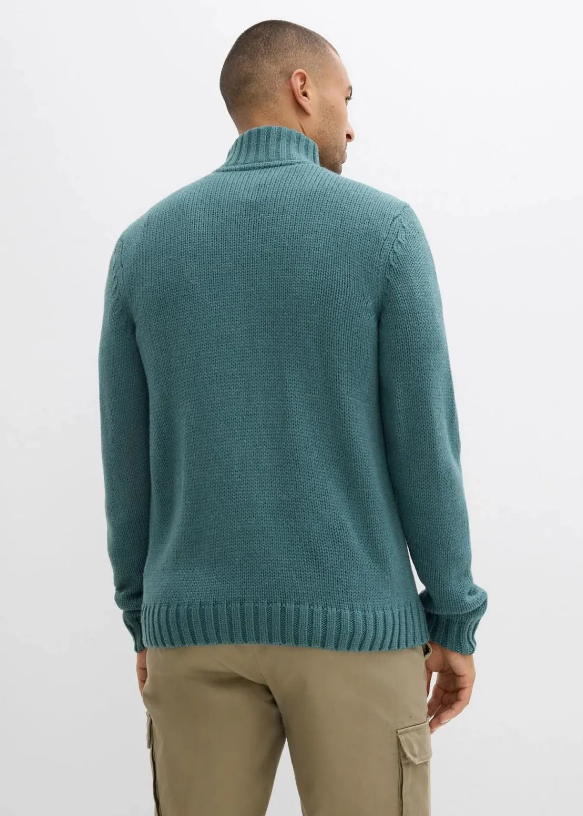 Lässige Strickjacke mit Stehkragen und Lederimitatdetails