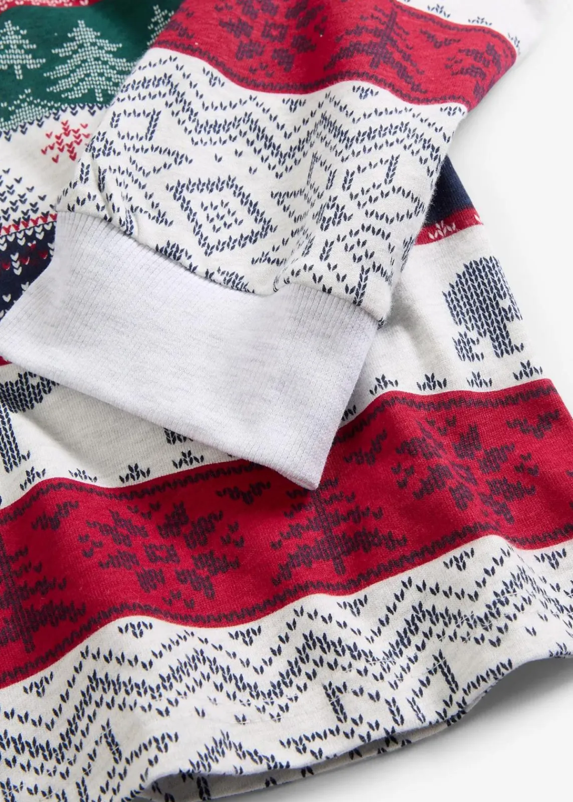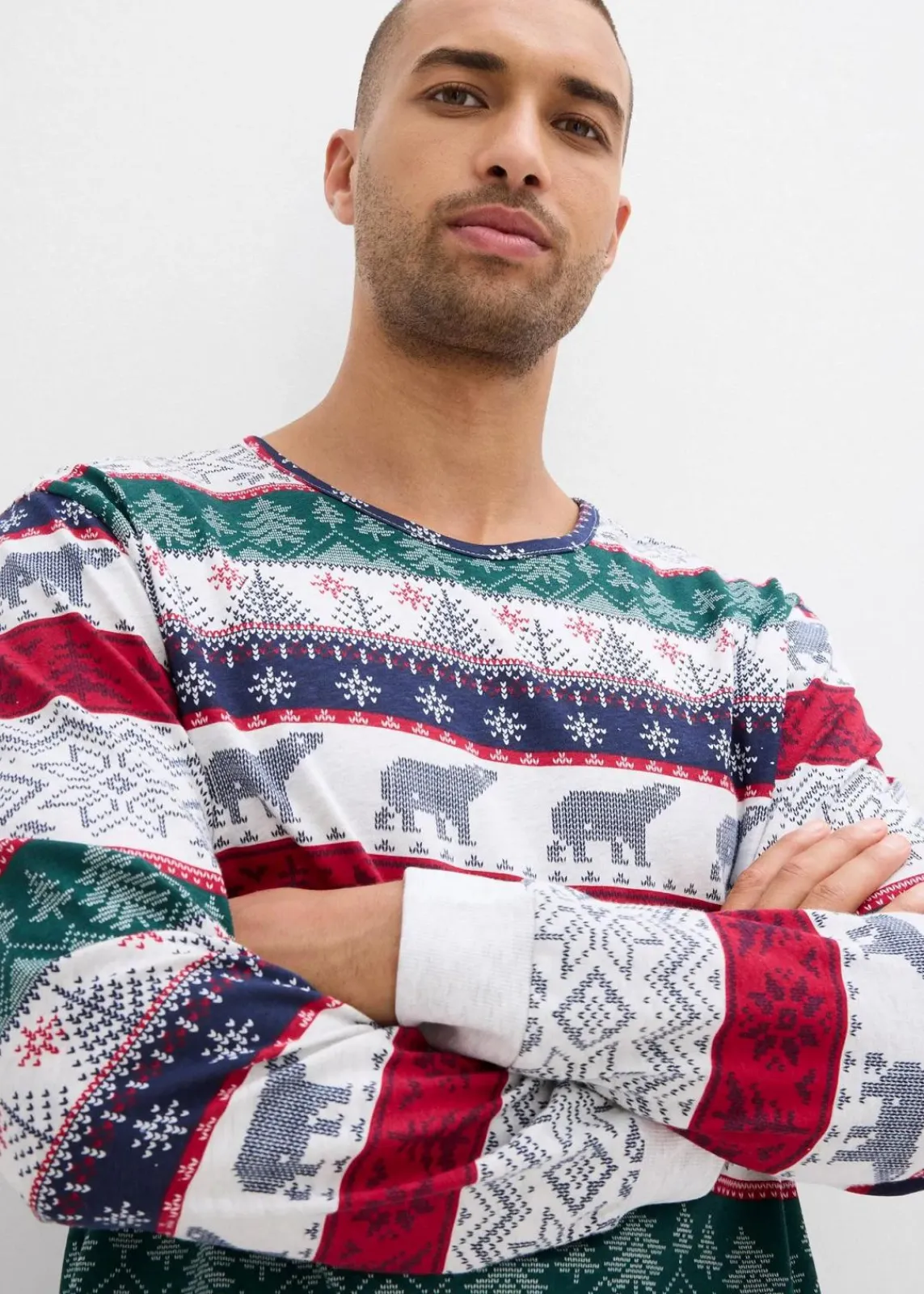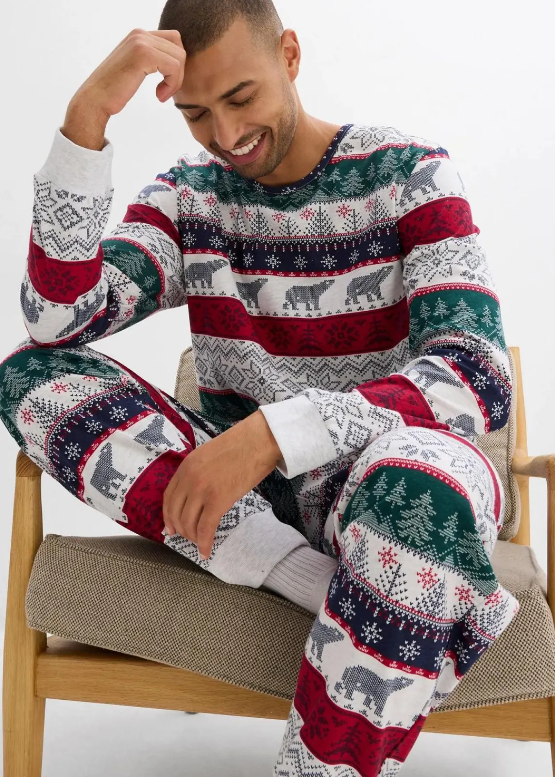 Gemütlicher Pyjama mit Norweger Druck mit einem Langarmshirt mit hohem Halsausschnitt und einer lockergeschnittenen Hose mit Eingriffstaschen