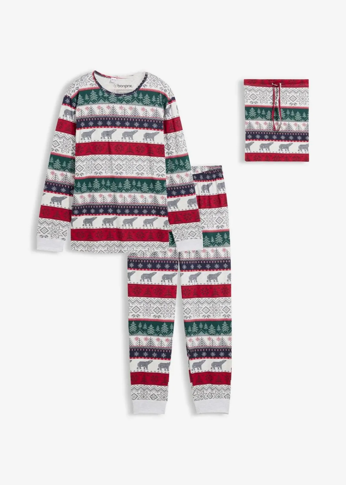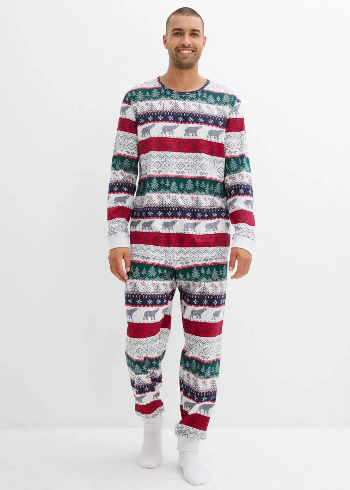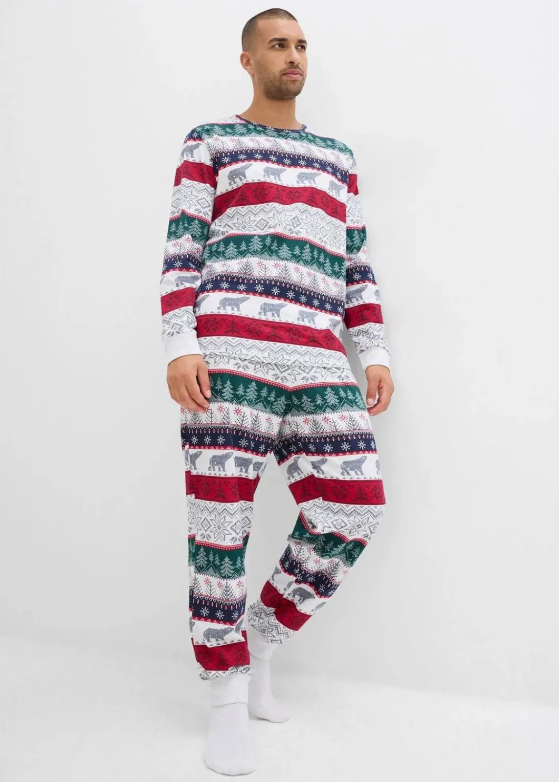 Gemütlicher Pyjama mit Norweger Druck mit einem Langarmshirt mit hohem Halsausschnitt und einer lockergeschnittenen Hose mit Eingriffstaschen