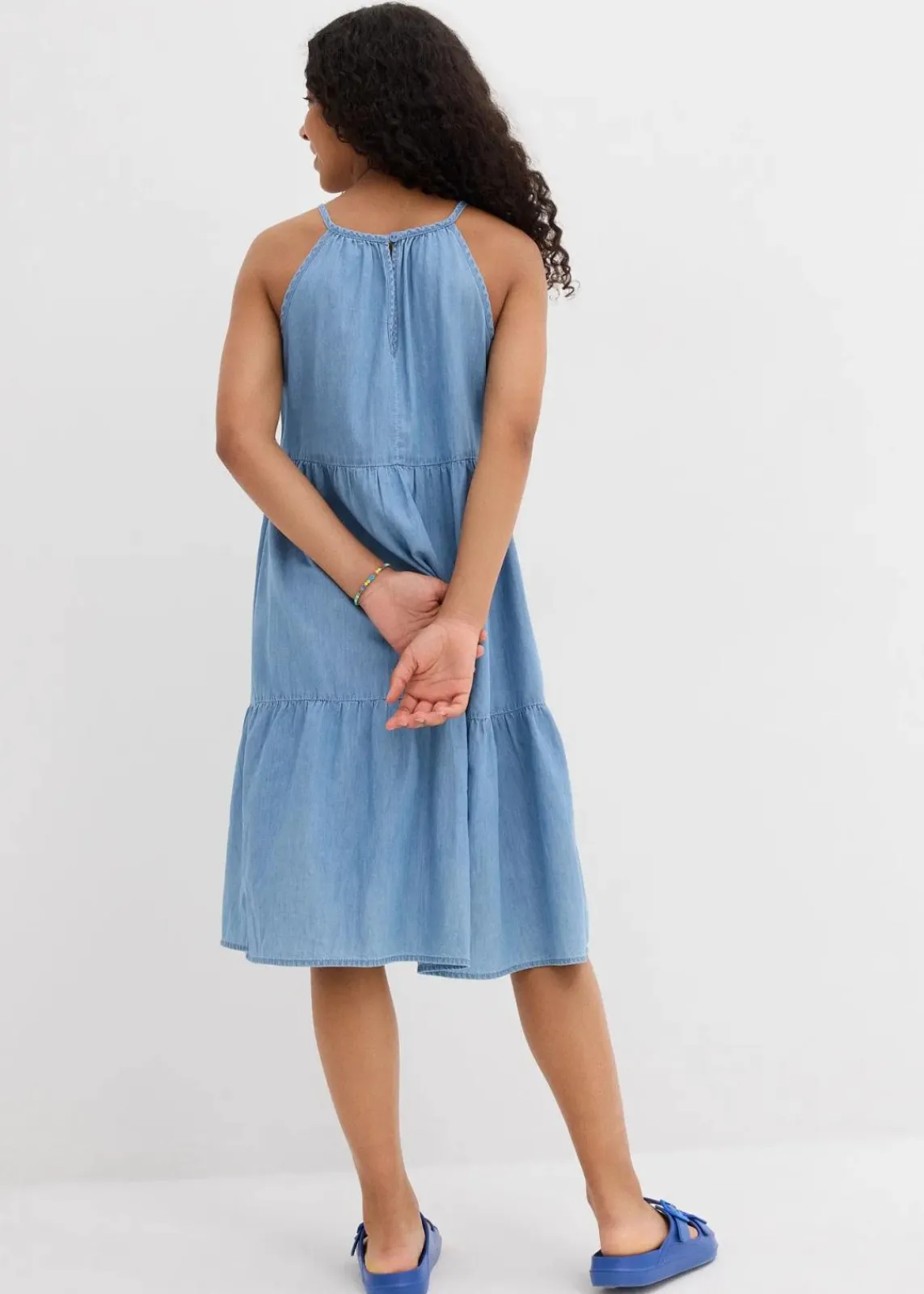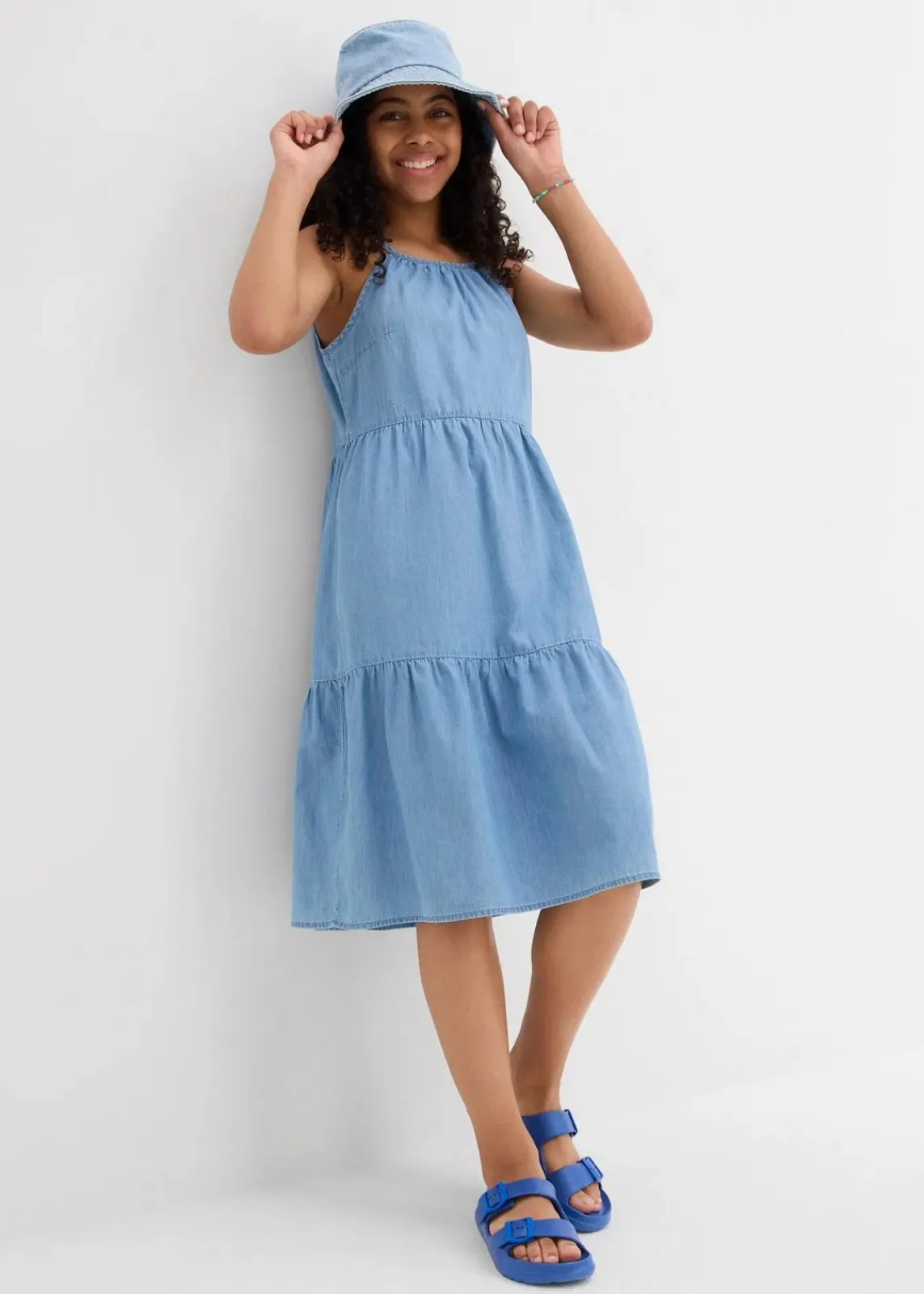Verspieltes Mädchen Jeanskleid mit Raffungen aus reiner Bio-Baumwolle