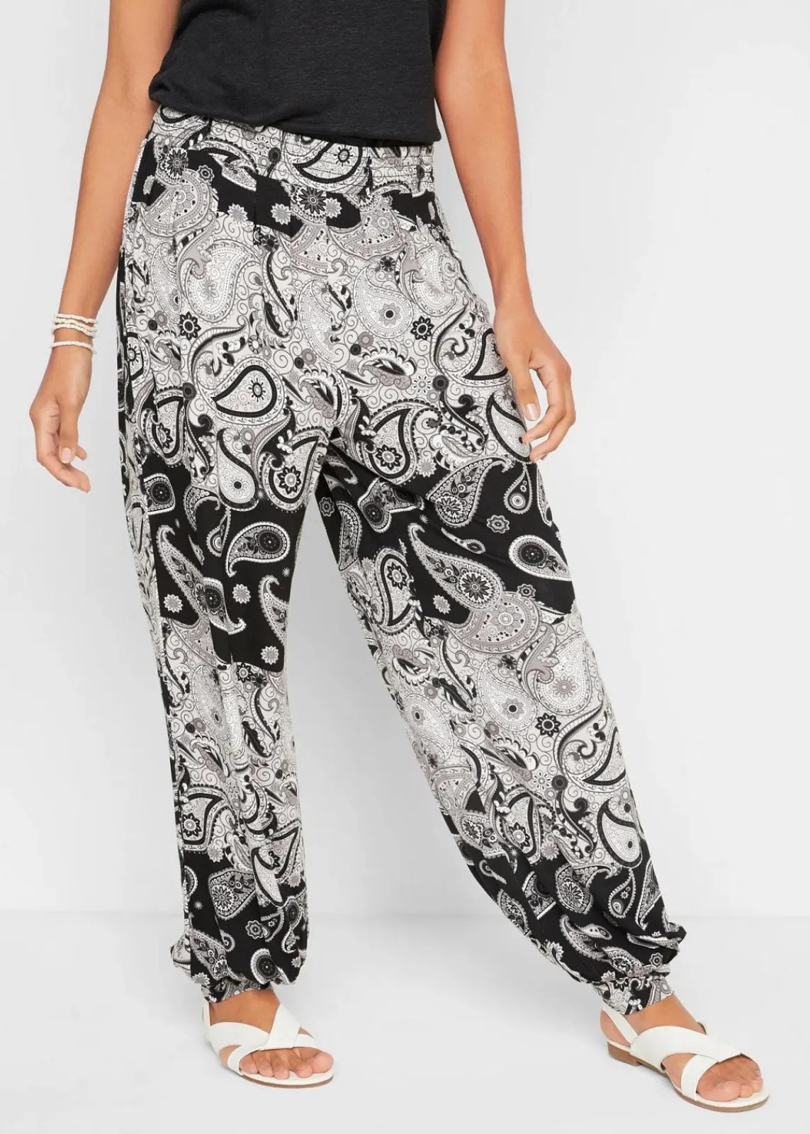 Bequeme Jersey-Haremshose mit Paisley-Print und gesmoktem, elastischem Bund