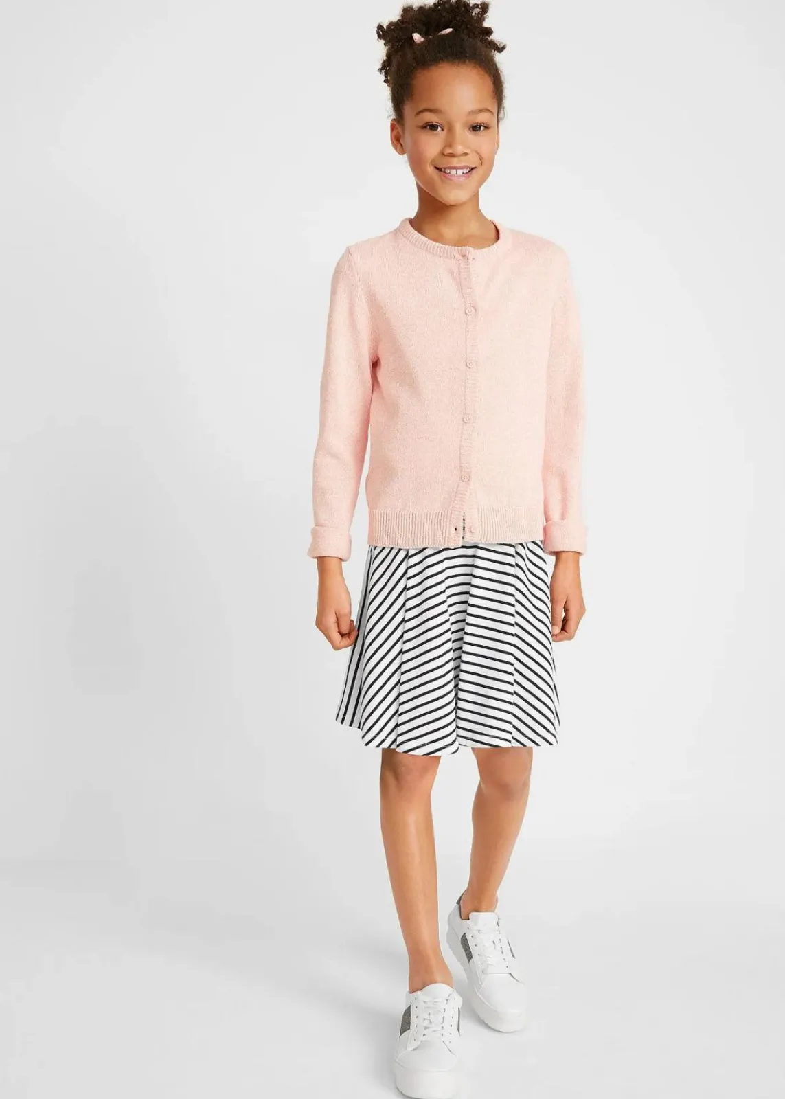 Toll zu kombinieren sind diese Röcke für Mädchen im praktischen Doppelpack, einer gestreift und einer schlicht unifarben: Leicht ausgestellte, schwingende Form und bequemer Schlupfbund.