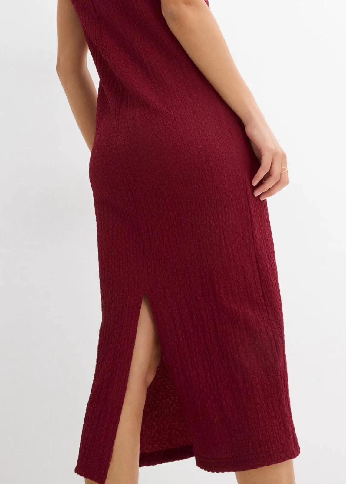 Langes Jerseykleid aus leichtem Strukturmaterial mit Seitenschlitzen