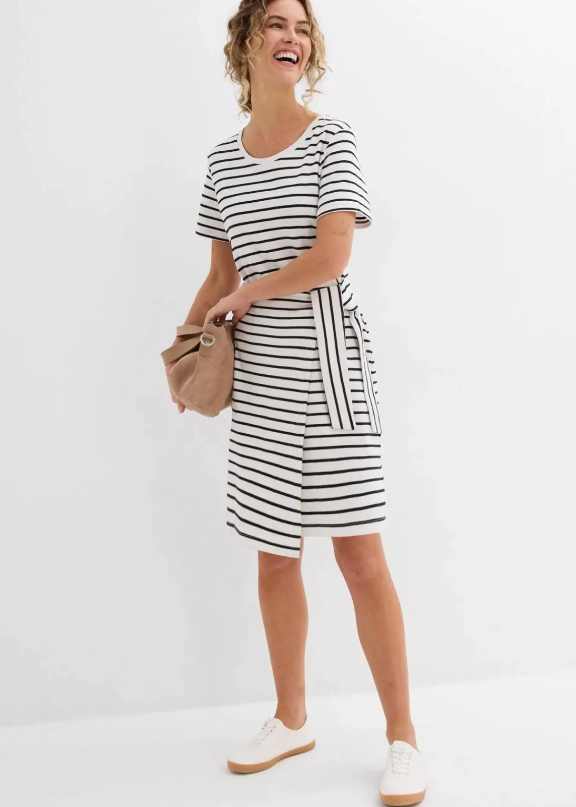 Jersey-Kleid mit Rundhalsausschnitt, taillierter Passform und einem geraden Saum