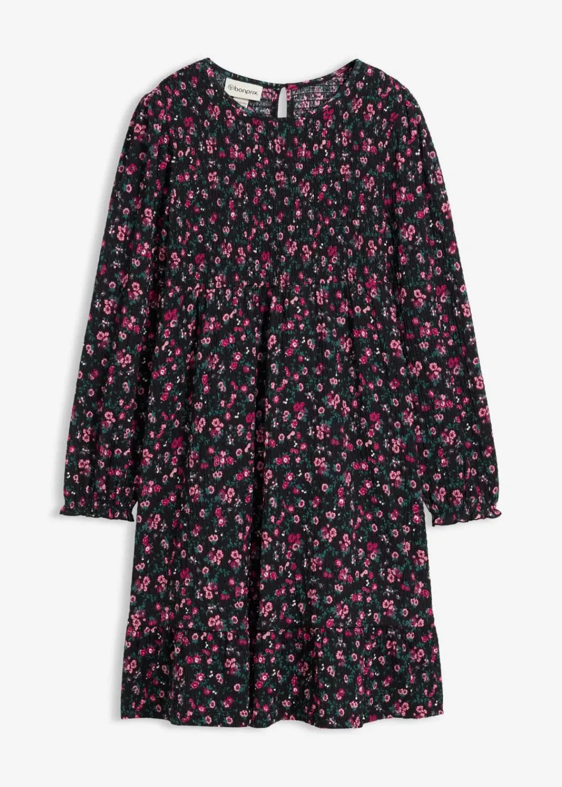 Schön geblümtes Mädchen Jerseykleid aus strukturiertem Crinkle