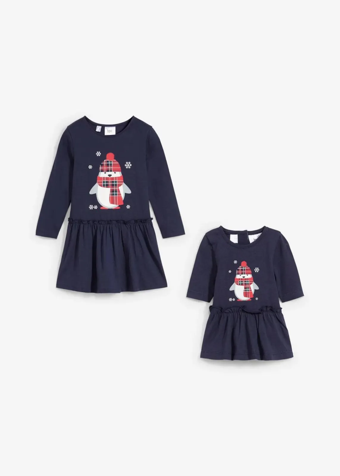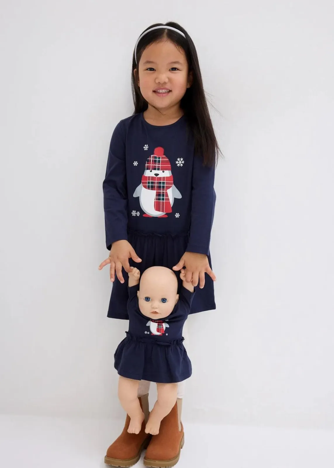 Süßes Kleid für Mädchen mit zusätzlichem Puppenkleid mit weihnachtlichem Motiv