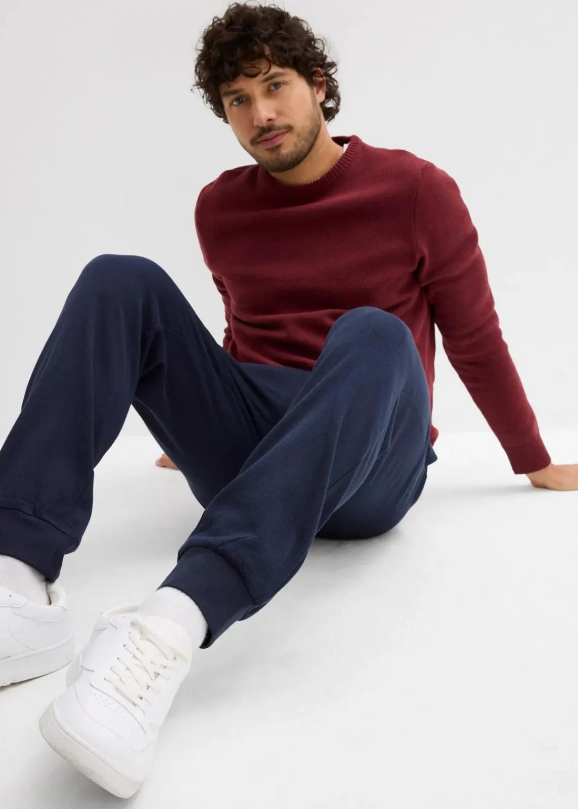 Basic Jogginghose mit Rippbündchen und drei Taschen, innen weich angeraut