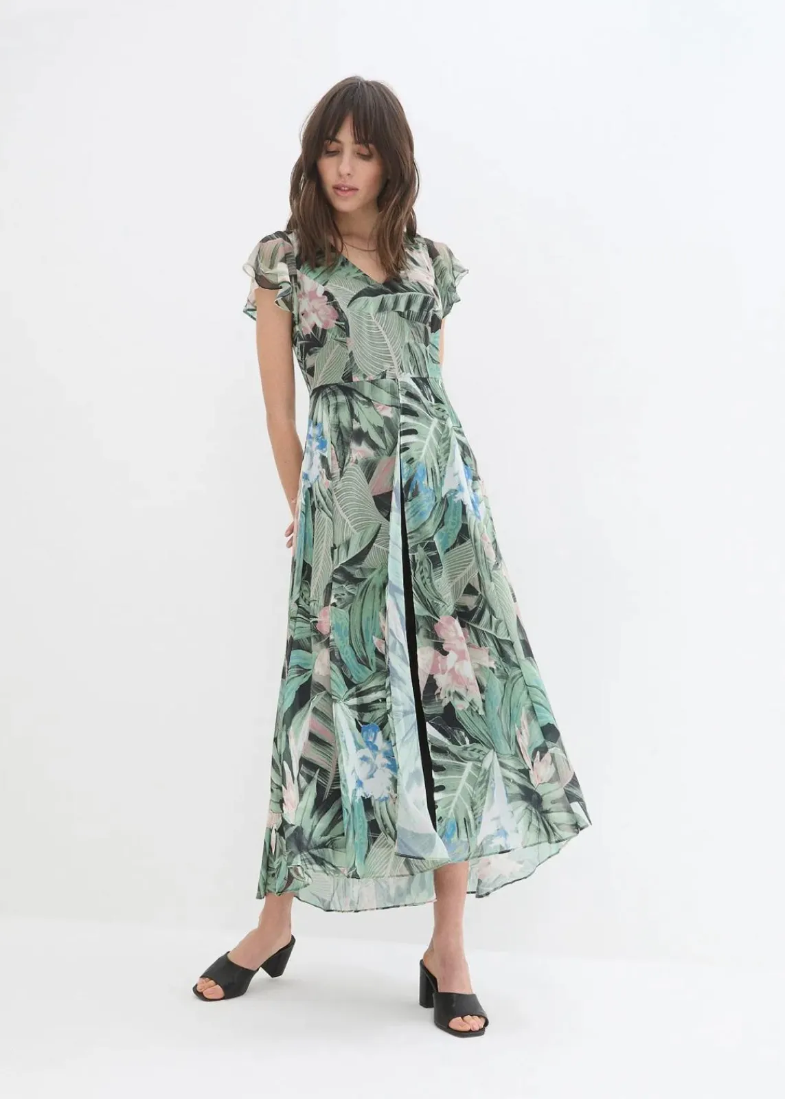 Jersey-Overall mit fließendem Chiffon-Überwurf