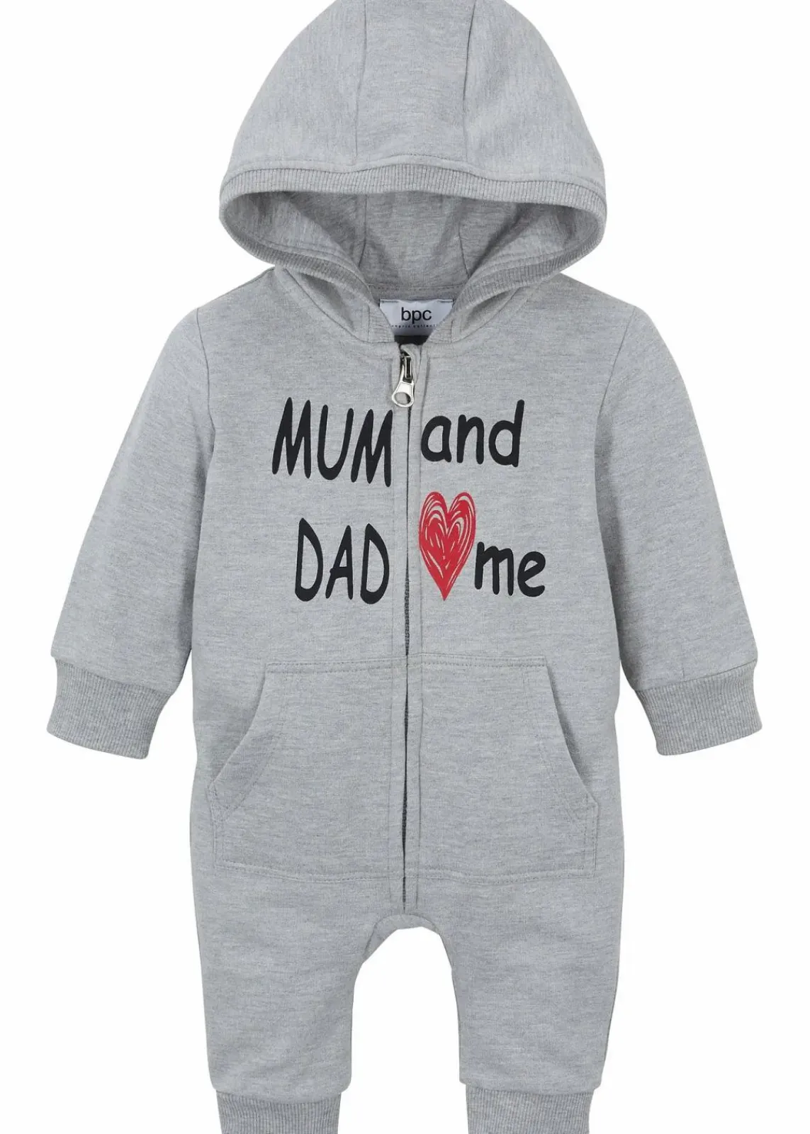 Niedlicher Babyoverall aus weicher Sweatware mit Kapuze und Kängurutaschen. Besonderer Blickfang ist der Statement-Aufdruck „Mum and Dad love me“. Die soften Rippbündchen und der bequeme Schnitt sorgen dafür, dass dein Baby sich rundum wohl fühlt.