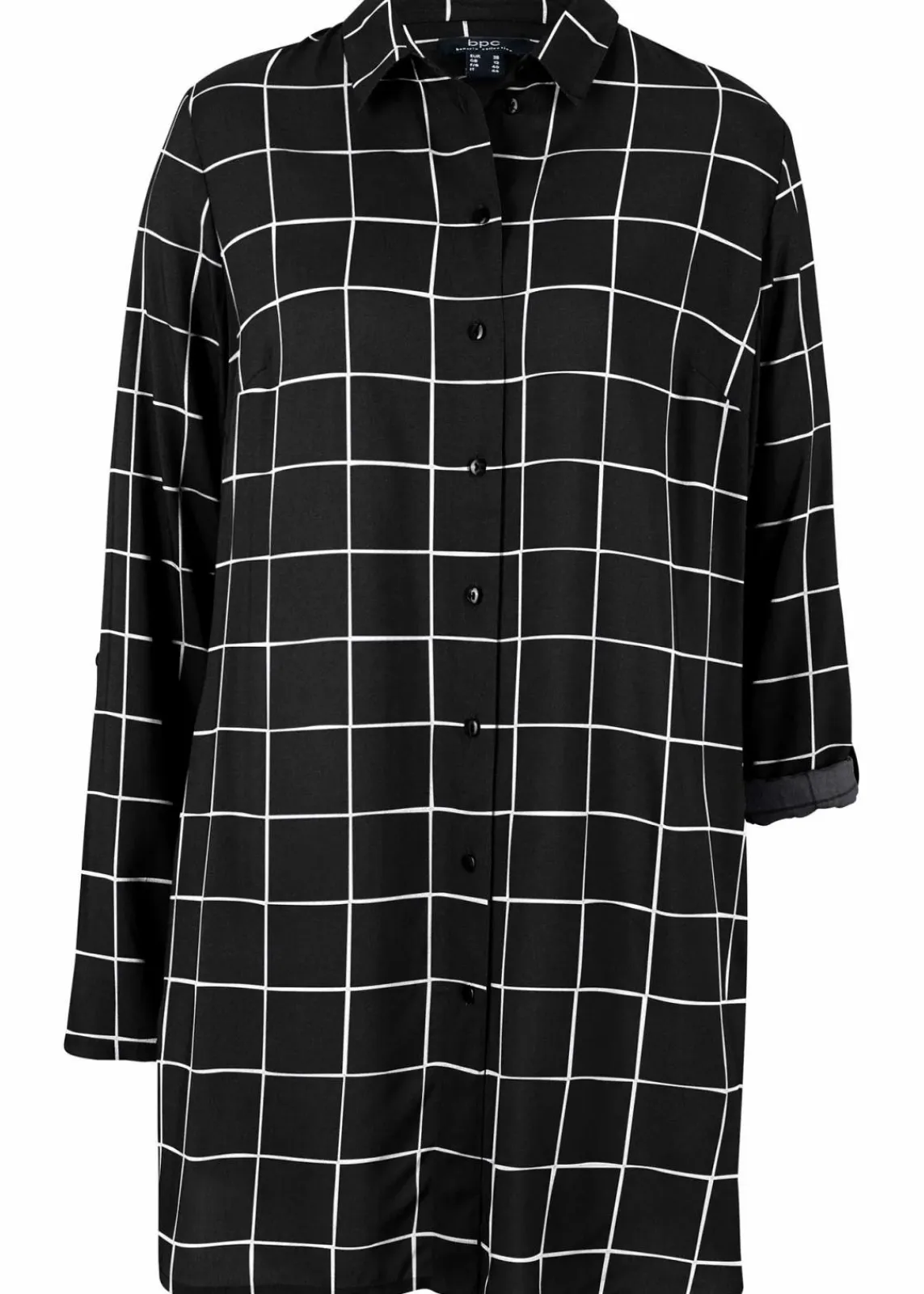 Karierte Longbluse mit durchgehender Knopfleiste schmeichelt jedem Figurtypen
