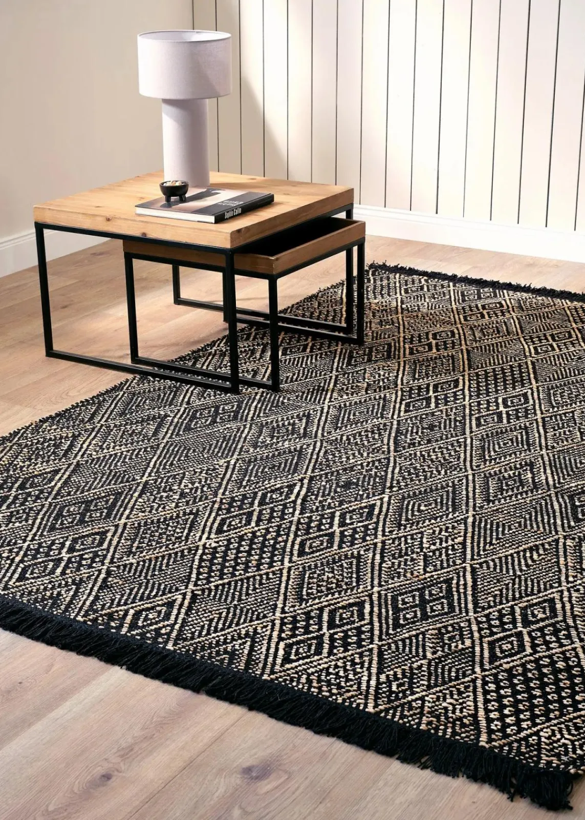 Handgewebter Teppich mit Fransen, da Handarbeit, kann es zu Farb- oder Maßabweichungen kommen