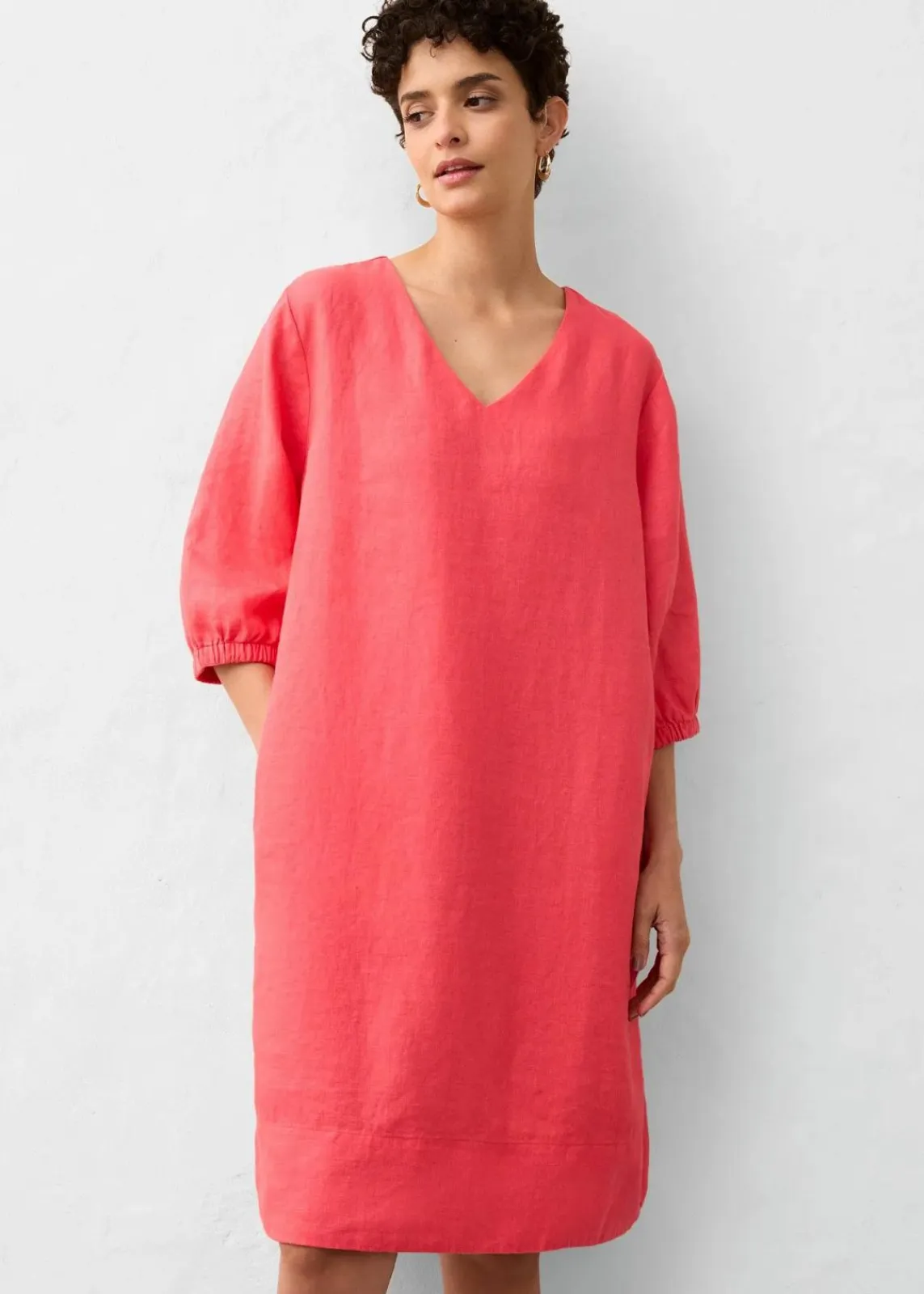 Kurzes Leinenkleid mit lockerer Passform und Raglanärmeln