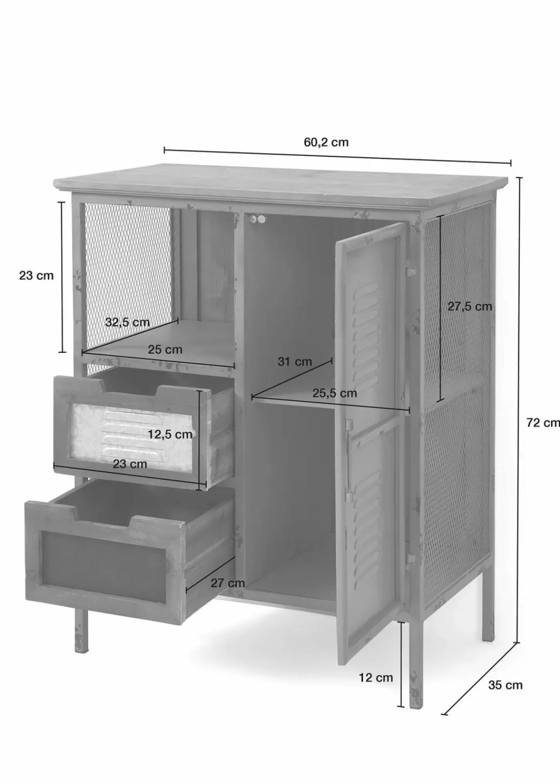- Maße:B 60 cm, T 35 cm, H 72 cm