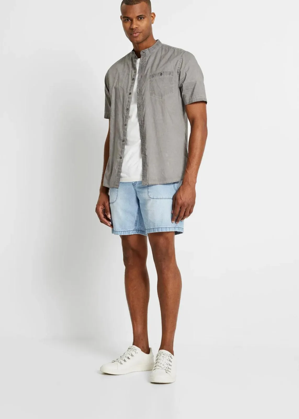 Kerniges Kurzarmhemd im Vintage Look mit Stehkragen