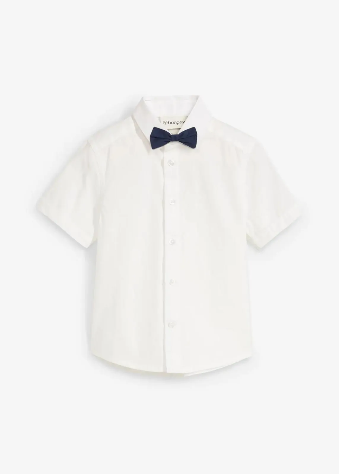 Schönes Jungen Kurzarmhemd mit einer kontrastfarbigen Fliege und rundem Saum