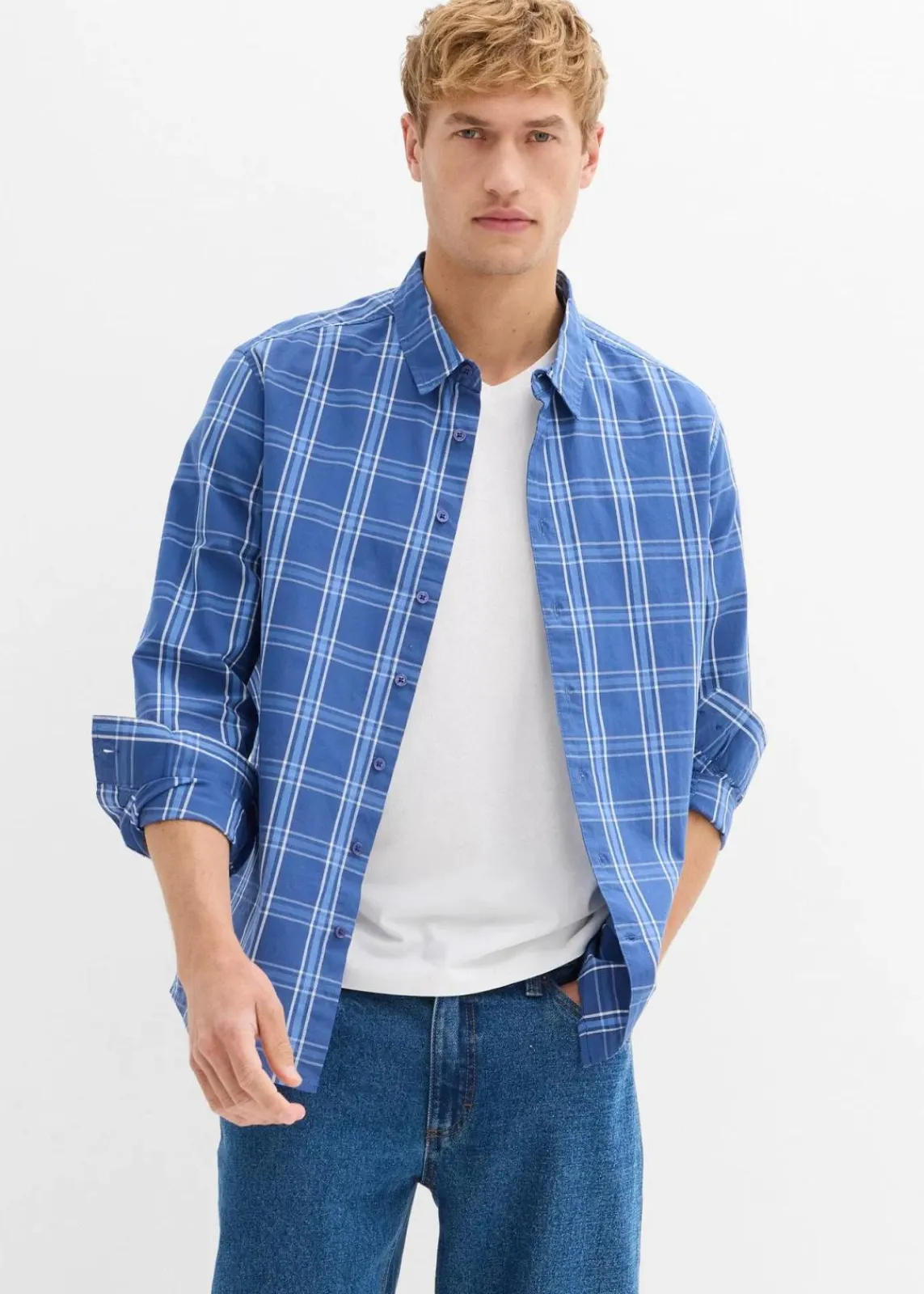 modernes Langarmhemd in Karo-Optik aus hautfreundlicher reiner Bio-Baumwolle