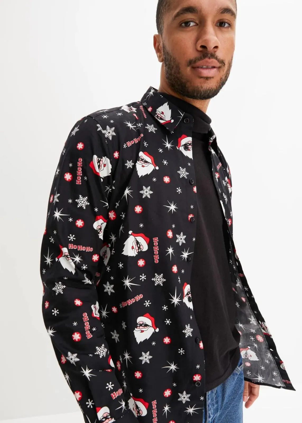 Angesagtes Langarmhemd mit weihnachtlichen Motiven.