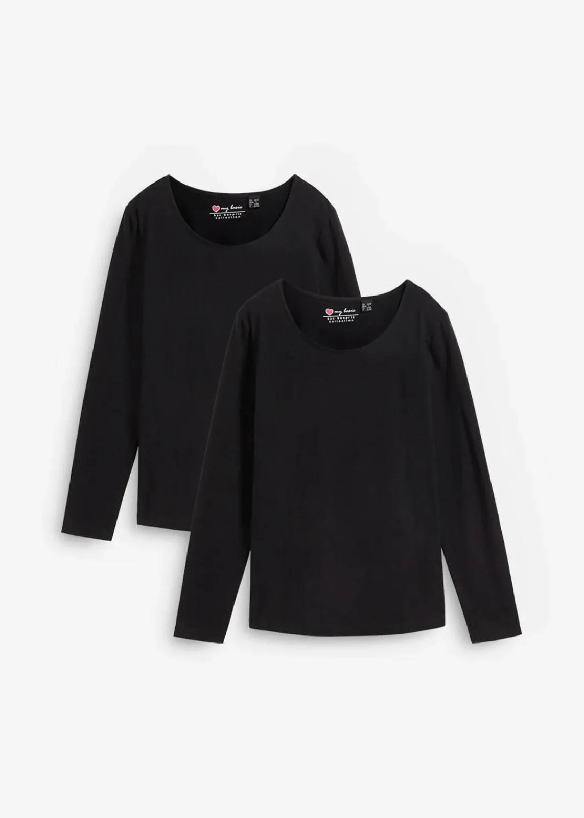 Basic Stretch-Shirt im Doppelpack, langärmelig